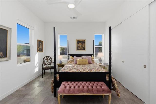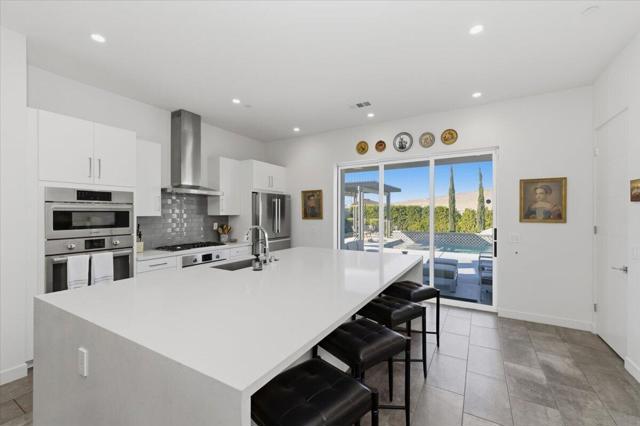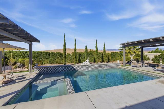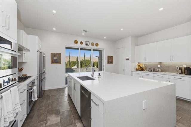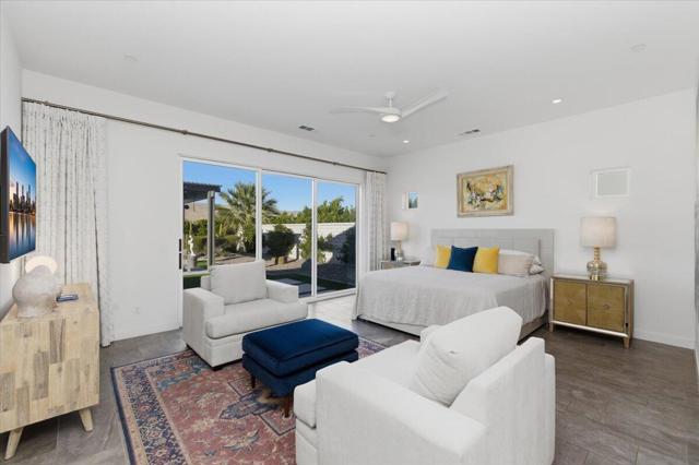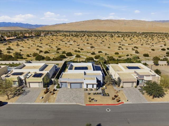 Tucked inside Iridium, a boutique gated enclave of just 27 New Century Modern residences in Rancho Mirage, this newer home channels the clean lines and easy elegance of classic desert design--reimagined for today's lifestyle. Inspired by the mid-century movement that shaped the Coachella Valley, this fully equipped mini estate delivers a polished blend of luxury, comfort, and effortless indoor-outdoor living.Inside, an open great-room layout is elevated by soaring 10-foot ceilings, recessed lighting, and expansive multi-slide doors that dissolve into two private outdoor patios--perfect for morning coffee, golden-hour cocktails, and everything in between. The resort-style backyard takes center stage with a Neptune-inspired saltwater pool and spa, outdoor shower, and fire pit, all framed by tranquil panoramic mountain views--including twilight skies with sightlines toward San Jacinto and Big Bear.Designed with privacy in mind, the home offers four bedrooms. The primary suite is a serene retreat with an oversized shower, accent-lit double vanity, and a generous walk-in closet. The gourmet kitchen flows seamlessly into the great room and wet bar, featuring top-tier stainless appliances and a quartz slab island--tailor-made for entertaining.Modern conveniences include a whole-home water purification + softener system, tankless water heater, smart lighting and home features, high-speed data wiring, and owned solar--a crisp, contemporary take on iconic desert living at its most refined.