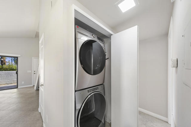 Stylish, comfortable, and thoughtfully maintained, this 2-bedroom, 2-bath home offers private, gated community living in sought-after Rancho Mirage. With vaulted ceilings and abundant natural light, the open and airy layout feels welcoming from the moment you walk in.Seamless flow between the living, dining, and kitchen areas--perfect for everyday living. One bedroom and full bath are located downstairs, with a second bedroom and full bath upstairs, offering ideal separation for roommates, guests, or a home office setup.Enjoy the convenience of in-unit laundry, refrigerator included, and direct access from the attached two-car garage through your own private patio entrance--a rare and highly desirable feature. The home has been freshly cleaned and painted, making it truly move-in ready.Located within the gated, well-maintained community of Rancho Mirage Resort, close to shopping, dining, and golf, this property is ideal for a long-term tenant seeking comfort, privacy, and a well-cared-for home in a prime Rancho Mirage location.