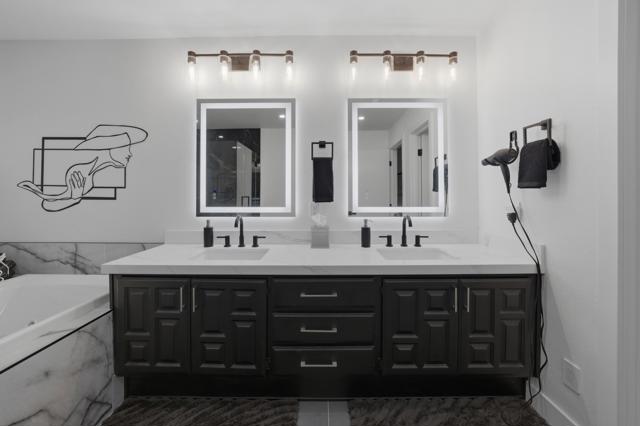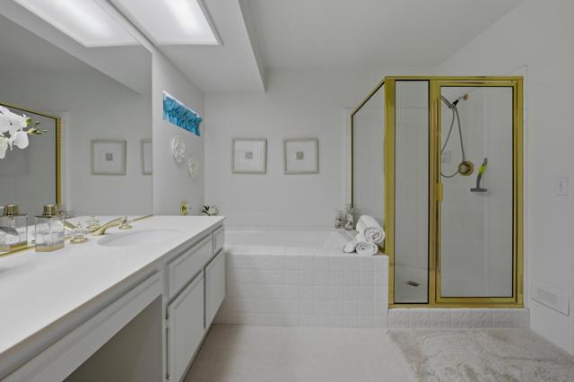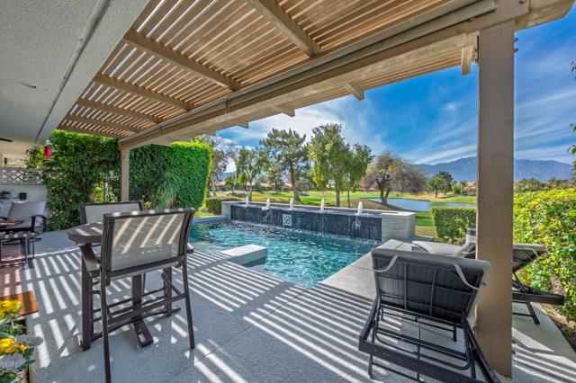 Welcome to your Ultimate Desert Sanctuary! Experience elevated desert living with breathtaking panoramic views of the majestic San Jacinto Mountains, shimmering lake vistas, and the lush fairways of the renowned Pete Dye Course at Westin Mission Hills. Situated on fee land, this gorgeous, fully remodeled home blends refined elegance with effortless comfort, offering a rare opportunity to own in a premier golf resort setting. This thoughtfully designed residence features three spacious primary suites with exceptional bedroom separation for privacy, along with four beautifully appointed bathrooms. The third bedroom functions as a private guest casita with its own separate entrance, creating an ideal retreat for visitors. A flexible fourth bedroom serves perfectly as an office, den, or game room with bar. A second-level guest ensuite adds even more versatility to the home's well-planned layout. The designer kitchen showcases quartz countertops and seamless, frameless windows that frame endless views, allowing you to enjoy the stunning scenery from the heart of the home. Custom roller shades, a formal dining room, and an expansive living room complete the sophisticated yet welcoming interior. Recent upgrades further elevate this exceptional property, including new flooring throughout, new ceiling fans, new TVs, and new toilets. Major system improvements include brand-new HVAC units for optimal year-round comfort. Additional enhancements feature custom roller shades and sliding glass doors, enhancing both style and energy efficiency. Step outside to your private oasis, where a newly updated pool area shines with a new pool pump, filters, tile, and stylish patio furniture--perfect for entertaining or relaxing while soaking in the spectacular mountain and fairway views. The home also offers a spacious two-car garage plus a separate golf cart garage, providing ample room for vehicles, recreational equipment, and plenty of additional storage space. This is desert resort living at its finest--luxury, privacy, functionality, and unforgettable views all in one extraordinary home.