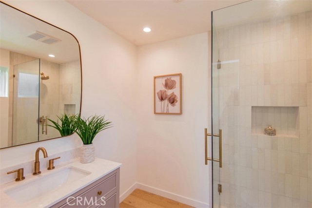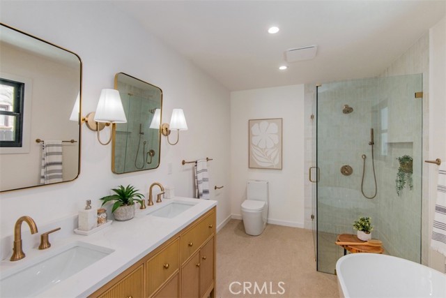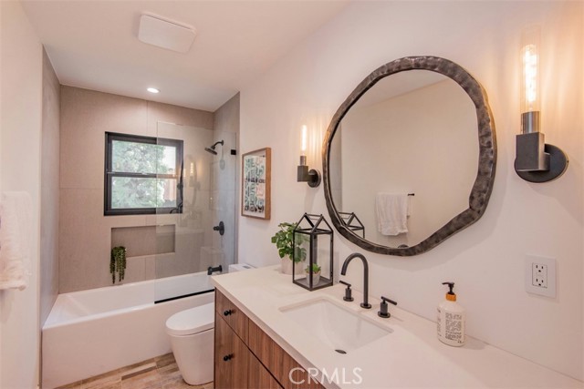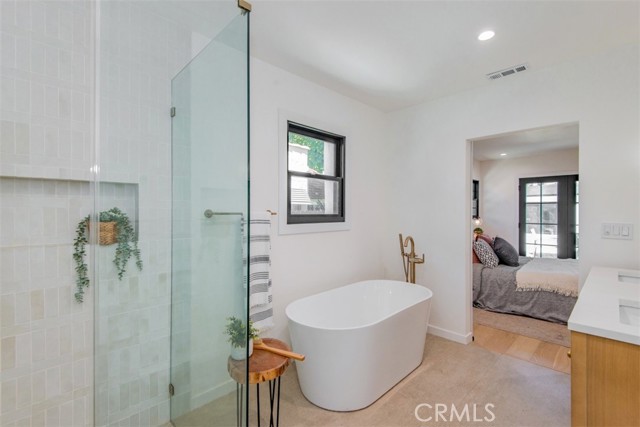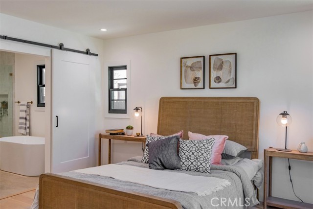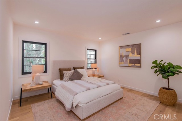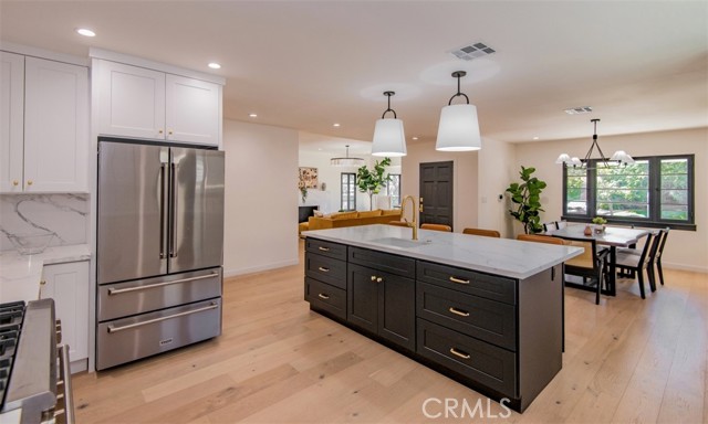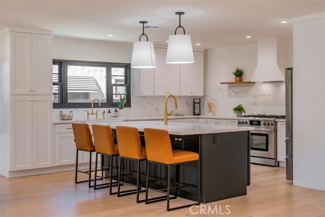 Welcome to 158 S Formosa Avenue, a rare reimagined traditional home nestled within a tranquil tree-lined street in the highly desirable Miracle Mile North Historic Preservation neighborhood. A Beautiful exterior color palette and succulent landscaping greet you upon arrival. Step inside and be captivated by the warm attention to detail, restoration, and creation of era style elements. The thoughtfully designed open-concept floor plan features a large gourmet kitchen perfect for culinary enthusiasts, complete with top-of-the-line custom matching appliances, quartz counters, white oak cabinetry, large Apron sinks, floating shelves and designer light fixtures. All overlooking the tranquil dining area. Your beautiful re-inspired living room features a stand out quartz fire place, custom crown molding, a historic timeless front bow window with leaded glass and French oak floors throughout. Parallel to the living room is your first bedroom, this could be converted very simply by the contractor into a den or your own private dining area if preferred. The large primary bedroom & bathroom features a double reeded vanity, standalone tub, walk in glass shower, large format designer tile, walk in closet, separate smaller closet and French doors leading out to a large wrap around deck. The other 3 bedrooms have ample space, closets and one of the bedrooms has french doors also leading out to the deck. The other two bathrooms have a mixture of marble vanities. Delta shower finishes, herringbone porcelain floors and brass hardware. The ADU has its own kitchenette, bathroom with walk in shower and hardwood floors, perfect for a at home office, studio or in-law suite. The ADU also features it's own address, gas & electric meter and tankless water heater. The grounds feature an enclosed new wood & iron gate, drip system, lush olive trees, a new large wooden deck perfect for hosting outdoor gatherings for al-fresco dining and entertaining. All new wooden privacy fencing, mature plants & trees, gravel and concrete. Upgrades include foundation, roof, furnace, plumbing, electrical, tankless water heaters, sewer, chimney, stucco, windows, doors, flooring, kitchen, bathrooms, bedrooms, living areas, landscaping and hardware. Highly sought after location, centrally located to schools, shopping and places of worship.