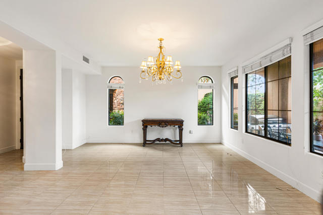 Welcome to refined desert living in the gated community of Brava in Palm Desert. This beautifully designed 3 bedroom, 3 bath residence offers an elegant blend of comfort, style, and effortless indoor - outdoor living. Step inside to discover a light filled open floor plan with soaring ceilings, generous living spaces, new flooring and tasteful finishes throughout. The home is thoughtfully designed for both relaxed living and entertaining, with a seamless flow between the living room, dining area, and well appointed kitchen featuring abundant cabinetry and ample counter space. The spacious primary suite serves as a private retreat, complete with unobstructed views of the mountains and golf course, and a luxurious ensuite bath offering dual vanities, soaking tub, and a separate glass shower. Additional bedrooms provide flexibility for guests, family, or a home office. Enjoy peaceful desert evenings from the covered patio, perfect for morning coffee or sunset gatherings. The home also includes a private attached garage and low maintenance landscaping for easy living. Residents of Brava enjoy resort style amenities including a sparkling pool and spa, fitness center, and beautifully landscaped grounds. Ideally located just minutes from shopping, dining, golf and entertainment, this home offers the perfect balance of privacy, convenience, and elevated desert lifestyle.A wonderful opportunity to experience luxury living in the heart of Palm Desert.