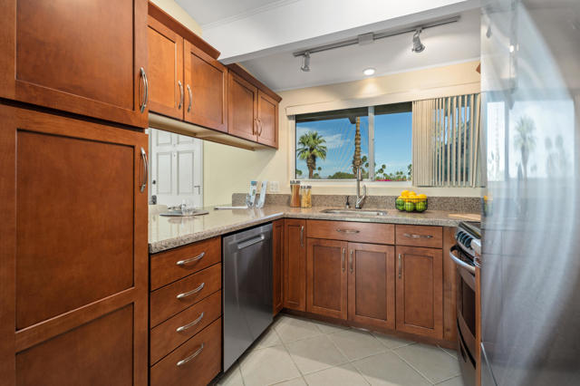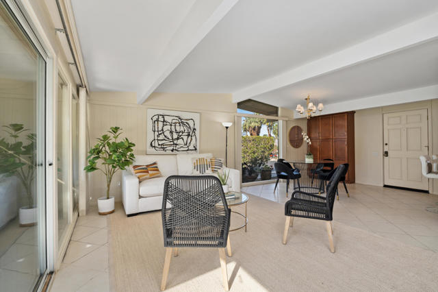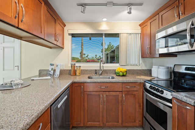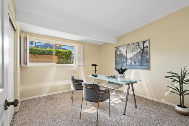 Welcome to Sands & Shadows, a centrally located South Palm Desert gem offering stunning mountain views and effortless desert living. Just minutes from El Paseo, this move-in-ready condo places you close to premier dining, shopping, art galleries, and some of the best biking and hiking trails in the Coachella Valley.This light and airy 2-bedroom, 2-bathroom residence features a thoughtfully refreshed interior with an upgraded kitchen showcasing stainless steel appliances and granite countertops, along with a recently renovated bathroom. Large windows fill the home with natural light, creating an open and inviting atmosphere throughout.Step outside and enjoy panoramic mountain views from the backyard -- an ideal setting for relaxing mornings or evening gatherings as the desert sky puts on a show.Additional highlights include a covered carport with a 240V electric vehicle charger, adding both convenience and modern functionality. Whether you're seeking a primary residence, second home, or a seasonal rental opportunity, this property offers flexibility and strong lifestyle appeal.The Sands & Shadows community is well maintained, with HOA dues covering exterior building maintenance, water, landscaping, and access to a beautiful community pool, allowing for easy, low-maintenance living.Well located, move-in ready, and rich in desert charm -- this is South Palm Desert living at its finest.Schedule your private showing today and experience it for yourself.