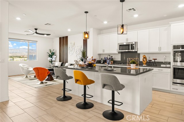 Welcome to this exceptional FULLY FURNISHED, move-in-ready Palm Desert lease where VIEW, VIEW, VIEW is the defining feature. From the moment you enter, the open-concept floor plan immediately draws your eye through expansive windows showcasing beautiful, unobstructed views, filling the home with natural light and an inviting sense of openness. This residence features builder-installed upgraded flooring throughout, thoughtfully selected for desert living, with custom tile flooring on the first floor and heat-resistant laminated flooring upstairs. Blinds are installed throughout, offering additional comfort and privacy. The well-appointed kitchen includes attractive countertops, ample cabinetry, and a spacious walk-in pantry, seamlessly connecting to the dining area where meals can be enjoyed while taking in the stunning views. The home is tastefully furnished, making it ideal for tenants seeking a comfortable and turnkey living experience. Upstairs, a rare second-floor balcony—found in only a few homes within the community—provides an elevated retreat to enjoy panoramic views, peaceful sunrises, and unforgettable sunsets. The backyard is beautifully landscaped with turf and cement/stone hardscaping, designed with water conservation in mind. Drip irrigation is installed throughout, making outdoor maintenance efficient and eco-friendly. This outdoor space is perfect for relaxing evenings, entertaining guests, or simply enjoying the scenic desert surroundings. Additional highlights include Tesla charger in the garage, and a full suite of smart-home features, including a Ring alarm system, Ring doorbell, Ring Wi-Fi thermostat, and smart keypad entry at the front door. The community offers resort-style amenities, including a swimming pool and spa, BBQ area, and an adjacent playground, with a dog park conveniently located just outside the community. Ideally located near JW Marriott Desert Springs and Desert Willow Golf Resort, where residents may enjoy residential golf discounts, this home also offers easy freeway access, is minutes from Fantasy Springs Casino, and is close to the highly anticipated Disney Cotino community and a future outdoor surf school planned near Desert Willow Golf Course. This fully furnished lease offers a rare combination of breathtaking views, thoughtful upgrades, smart technology, elegant outdoor living, and a premier Palm Desert location.