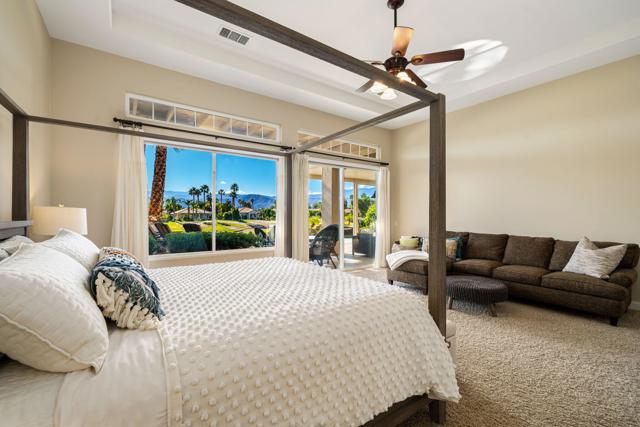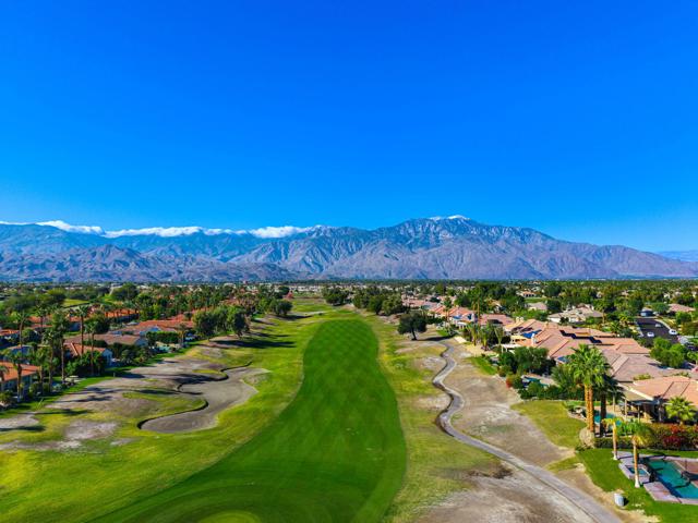New Listing! Executive Mira Vista Golf Course RetreatLocated on the 16th fairway of the Gary Player Signature Course in Mission Hills, this stunning executive retreat offers sweeping golf course and mountain views along with a private sparkling pool and spa designed for luxury and comfort.Recently remodeled, the home features three en-suite bedrooms, including a detached casita complete with kitchenette and private bathroom. The primary and second bedrooms offer king-size beds, while the third bedroom features a queen bed. A dedicated office or optional fourth bedroom includes its own en-suite bathroom and a queen Murphy bed, providing flexible space for additional guests.Inside, soaring ceilings create a light and bright atmosphere throughout the home. Elegant wood-look tile flooring, a cozy fireplace, and expansive windows showcase the beautiful views.Outdoor living is just as impressive. Relax beneath the large covered lanai featuring a comfortable sofa lounge and dining area overlooking the fairway. The spectacular front courtyard offers another private space perfect for morning coffee or brunch. This home sits on a large private lot within the guard-gated Mira Vista community, surrounded by majestic palm trees.The remodeled kitchen features granite countertops, an island, and a wet bar, making it perfect for entertaining.Golf lovers will appreciate pay-as-you-play access to two nearby public courses, the Gary Player Signature Course and the Pete Dye Course, located just around the corner at the Westin Resort and Spa. Other nearby country clubs offer seasonal memberships.Enjoy a short drive to the famous El Paseo shopping and dining district, vibrant Palm Springs nightlife only 9 miles away, and Agua Caliente Casino just 5 minutes away.Take in majestic mountain and golf course views from the living room, dining area, kitchen, and primary bedroom. You may never want to leave this beautiful home on Via Bella, which means ''beautiful street'' in Spanish.
