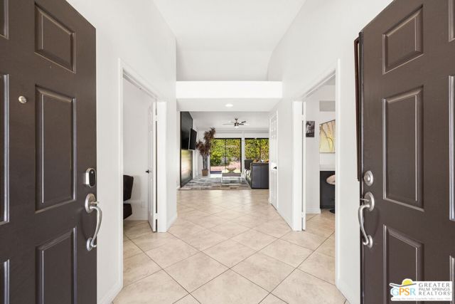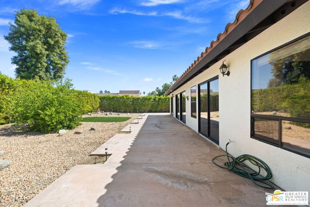 Stunning Hacienda-Style Home on Private Cul-de-Sac - Available Furnished or Unfurnished! Welcome to this beautifully updated 3-bedroom, 2.5-bath hacienda-style home nestled on a quiet, private cul-de-sac in one of Palm Desert's most sought-after neighborhoods. Just 16 homes share this peaceful street with no through traffic, offering a rare sense of privacy and community. Spanning 2,122 SF on an oversized 9,583 SF lot with mature citrus trees and stunning mountain views, this home is as functional as it is charming. The open living room features soaring cathedral ceilings and sliding doors that flow seamlessly to the spacious backyard perfect for entertaining or relaxing in the desert sun. Cozy up by the brick gas fireplace in the family room, complete with a wet bar for hosting guests.The updated kitchen boasts brand-new countertops, new KitchenAid stainless steel appliances, and a bright breakfast nook that fills with gorgeous morning light. Modern ceiling fans and recessed lighting throughout add a fresh, contemporary feel. The primary suite includes a walk-in closet, and the home has been freshly painted inside and out.A 3-car garage provides ample storage for vehicles and a golf cart to enjoy the nearby CV-Link trail. Prime Location - walking distance to Palm Desert High School and Sacred Heart Church, minutes to El Paseo shopping, Westfield Mall, McCallum Theater, and College of the Desert. Available furnished or unfurnished call today to schedule your private showing!