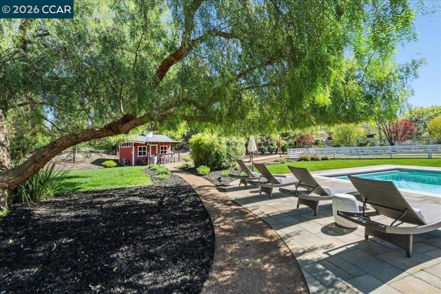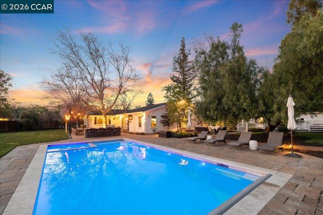Tucked at the end of a quiet cul-de-sac in the heart of Danville, Heritage Acre Estate is a rare level single-story retreat on a flat one-acre± lot, blending privacy, lifestyle, and refined living. Ideally located near top-rated K–12 schools and just minutes to downtown Danville, this exceptional property offers estate-style living with convenience and timeless charm. Thoughtfully remodeled with approximately $450,000 in upgrades, the home offers 5 bedrooms, an office, and a versatile bonus room across approximately 3,377± square feet. Soaring ceilings and natural light enhance the open layout, while the remodeled kitchen features marble countertops, high-end appliances, and designer-inspired finishes, flowing seamlessly into expansive living and entertaining spaces. The grounds are designed for unforgettable living, featuring a pool and spa, outdoor kitchen, fire pit, bocce court, horse arena, and multiple entertaining areas surrounded by mature landscaping. A reimagined chicken coop serves as a unique entertainment space with bar seating and taps. Additional highlights include a tankless water heater, well irrigation, outdoor TVs, and updated garage door with opener. A special home where everyday moments become traditions.