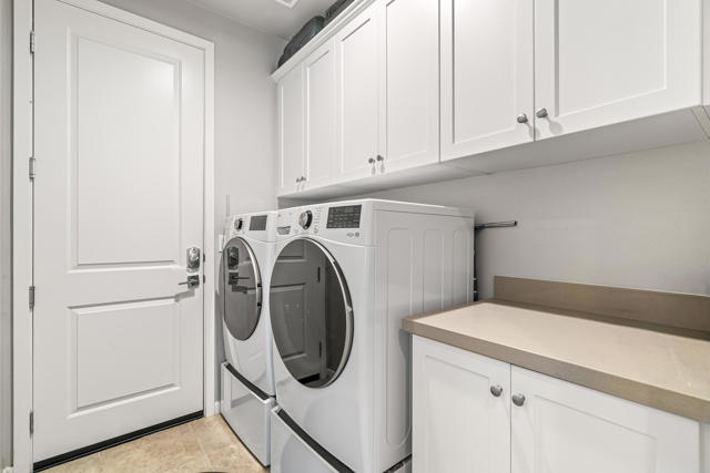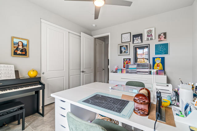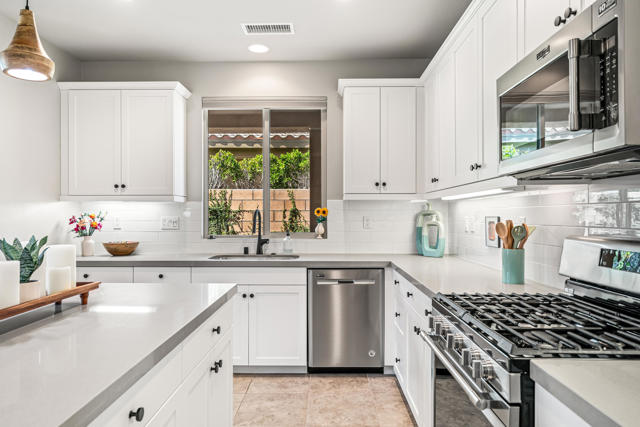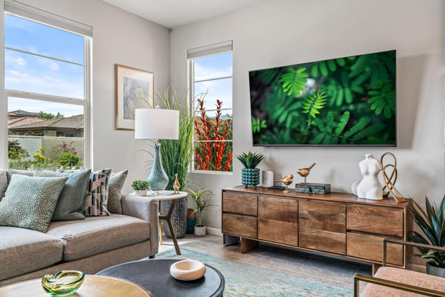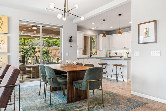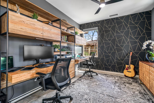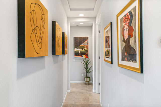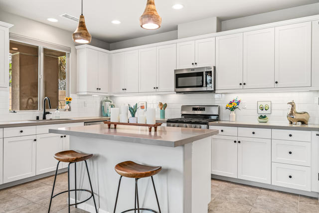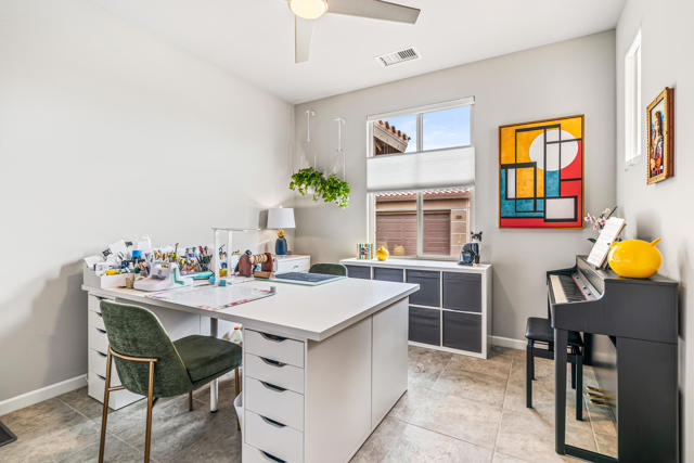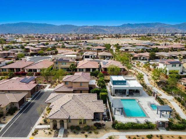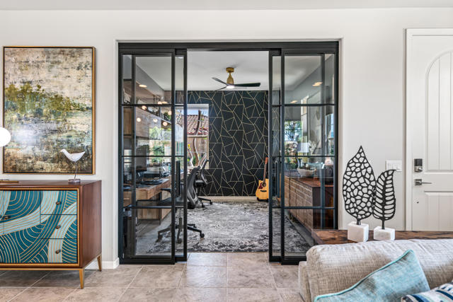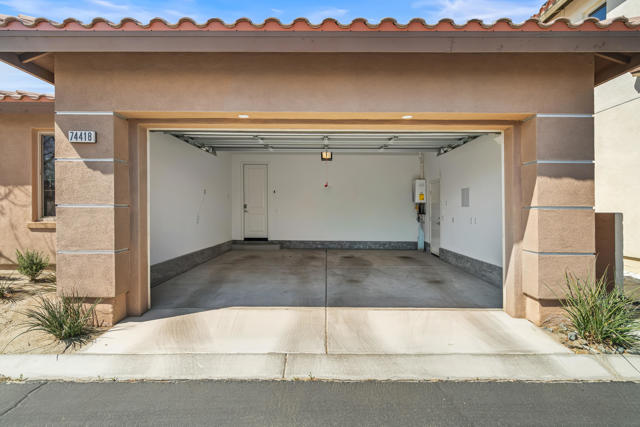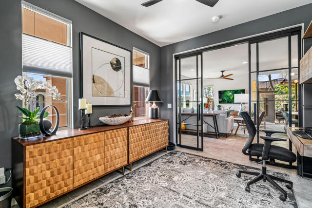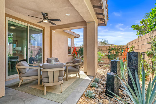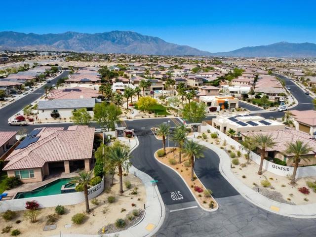 Welcome to Genesis, a gated, modern community in the heart of Palm Desert. Located at 74418 Millennia Way on a desirable corner lot, this beautifully upgraded residence offers 2 bedrooms, 2 bathrooms, and a versatile den featuring top-of-the-line steel sliding doors by Crystalia Glass, perfect as a third bedroom, private office, or media space. Every detail has been thoughtfully designed to create a bright, open, and functional living environment ideal for today's sophisticated lifestyle.The open floor plan is filled with natural light, soaring ceilings, and a soothing neutral palette, enhanced by upgraded automatic shades throughout. The gourmet kitchen serves as the heart of the home, featuring a large center island with breakfast bar seating, stainless steel appliances, and a stylish, contemporary backsplash. It flows seamlessly into the spacious great room, perfect for entertaining, family gatherings, or relaxed everyday living.The primary suite is a true retreat, featuring a walk-in closet, dual vanities, and a large, open, zero-entry shower with modern tile and glass accents that exude both luxury and functionality. The secondary bedroom offers flexible elegance, ideal as a private guest suite or an inspiring craft or studio space.Step outside to a private backyard oasis featuring professionally designed landscaping and fountains by Teserra, a covered patio with a misting system, conversation area, greenspace, and peek-a-boo mountain views,all with low-maintenance design for effortless desert living. Additional convenience comes from a Wi-Fi controllable garage system for modern living.Genesis provides resort-style amenities including a sparkling community pool and spa, fitness center, dog parks, walking trails, gated entry, front yard maintenance, and included cable and internet. Ideally located near world-class shopping, dining, golf, Acrisure Arena, and with easy access to I-10, this home blends luxury, comfort, and convenience in one of Palm Desert's most sought-after communities.