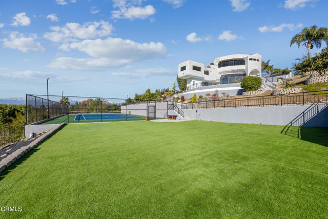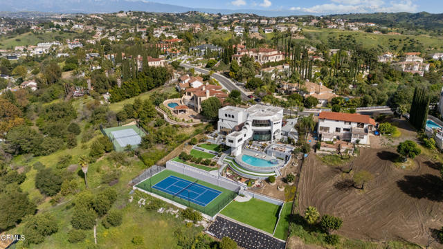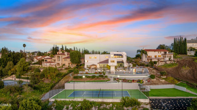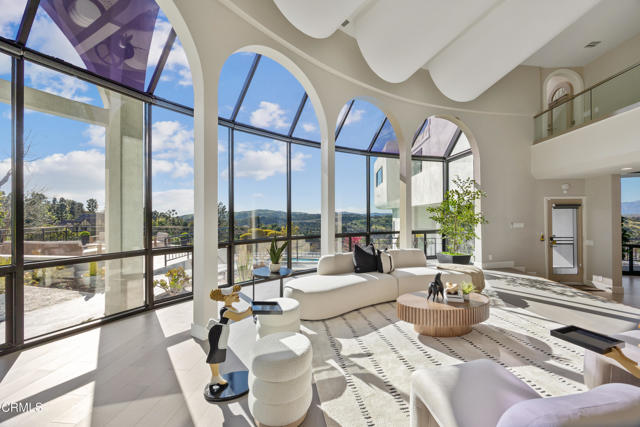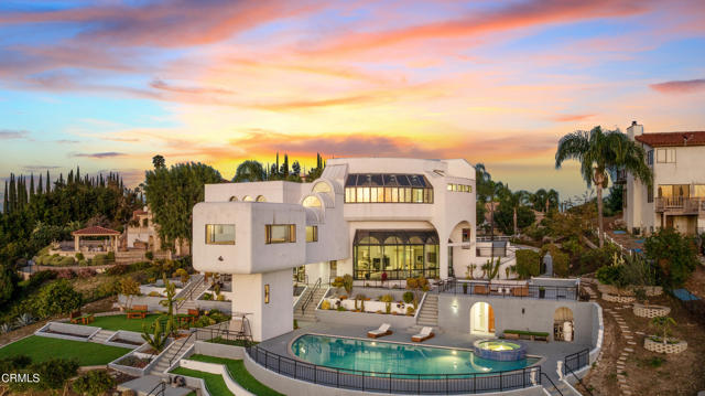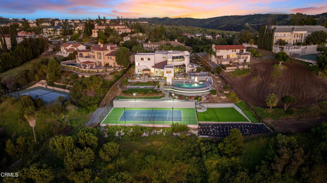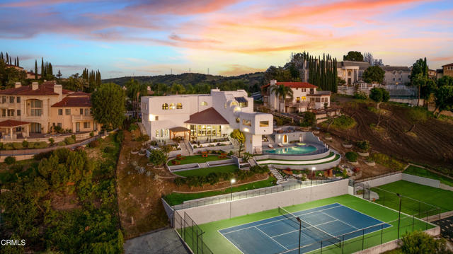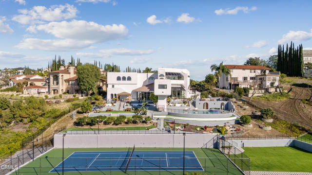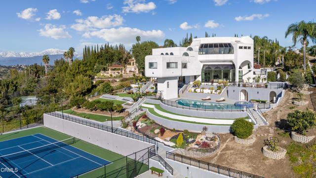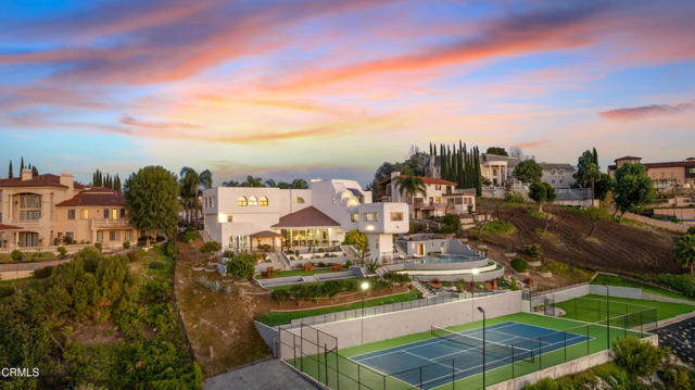 Modern Art Deco Revival Estate in The Country EstatesA rare architectural statement within the prestigious 24-hour guard-gated Country Estates, this Modern Art Deco Revival estate commands a private, resort-caliber setting with sweeping panoramic city-light and mountain views.Set behind a grand approach, the residence blends sculptural geometry with refined Contemporary symmetry, offering a lifestyle designed for both elevated entertaining and serene everyday living.The grounds unfold as a true private resort: a full-size tennis court, elevated pool and spa terrace curves along the landscape with sweeping views, putting green, gazebo, viewing deck, and curated gardens framed by mature fruit trees, including orange, guava, kumquat, tangerine, apple, dragonfruit, and rare Leon avocado. Every element has been thoughtfully positioned to maximize privacy and panoramic vistas.Dramatically extending from the upper level, an expansive viewing and meditation tower unfolds as a light-filled architectural aerie designed as a sanctuary above it all. Framed by sweeping panoramic vistas, the elevated pavilion offers a rare vantage point for sunrise rituals, sunset reflection, and stargazing under open skies.Inside, soaring ceilings, distinguished archways, expansive walls of glass create a luminous interplay of light and space. Floor-to-ceiling windows invite the outdoors in, while an expansive floor plan offers seven bedrooms, multiple grand-scale living areas, and a private executive office with its own entrance.The chef's kitchen is appointed w/ Sub-Zero refrigeration, professional-grade appliances, custom cabinetry, & an oversized island designed for gathering.The primary suite serves as a tranquil retreat, featuring spa-inspired amenities, a soaking tub, walk-in shower, bidet, & private lounge area. Six additional bedrooms provide generous accommodations for family and guests. Reinforced security glass & carefully selected finishes reflect a commitment to both elegance & peace of mind.Enhancing the resort experience is a detached wellness retreat, complete w/ sauna, dedicated shower suite, & private water closet, delivering spa-level amenities just steps from the pool terrace.Residents of The Country enjoy 24-hour security, clubhouse, equestrian trails, parks, playgrounds, & award-winning Walnut Valley schools.This is more than a residence, it's a legacy estate defined by architectural presence, privacy, & the highest standard of SoCal living.