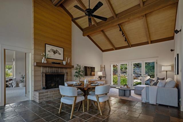 Valley Living at Its Best! Set on over an acre, this striking modern timber-framed ranch offers space, light, and exceptional craftsmanship. The three-bedroom, 2½-bath residence blends natural materials with dramatic scalefeaturing open beamed wood ceilings and seamless indoor-outdoor living designed for relaxed valley life. At the heart of the home is a renovated chefs kitchen complemented by slate floors, custom built-ins, and an airy atrium that fills the interior with natural light. A dedicated office and wine cellar add functionality and refinement. Step outside to the expansive south-facing covered loggia, where sweeping valley views create the perfect setting for entertaining or quiet evenings. The property also includes a separately accessed 1,430 sq. ft. custom-built studio with a half bathideal for creative work, guests, or a private retreat. This beautifully crafted space features vaulted tongue-and-groove wood ceilings, maple flooring, and custom built-ins. A rare opportunity to experience the epitome of valley livingprivacy, craftsmanship, and versatility all in one remarkable property.