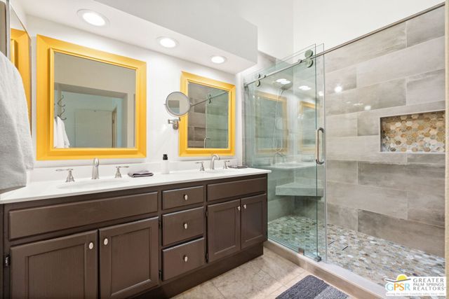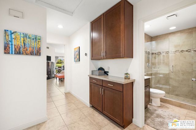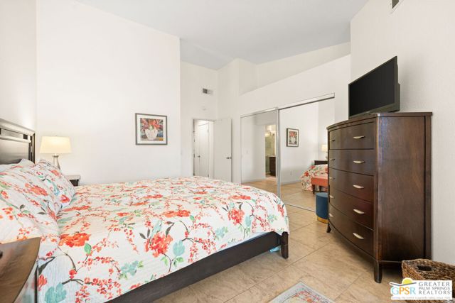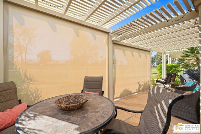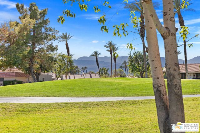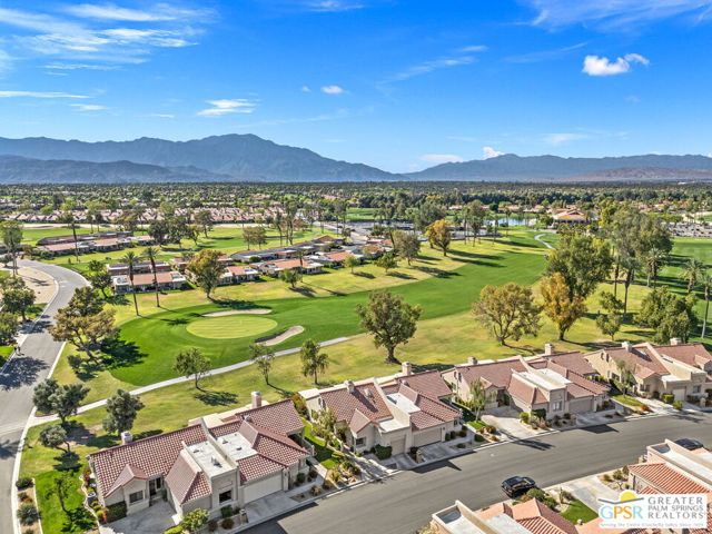 Introducing this beautifully updated and expanded Augusta model, ideally positioned just off the 1st green of a well-maintained 18-hole championship course, offering sweeping mountain, golf course, and clubhouse views. Thoughtfully designed with a cohesive open-concept layout, the great room showcases soaring vaulted ceilings, plantation shutters, custom window treatments, and a striking stacked stone fireplace, flowing seamlessly into an enlarged dining area.The kitchen blends style and functionality with granite countertops, stainless steel appliances, a glass tile backsplash, and soft-close custom cabinetry. It has also been fully upgraded along with all windows and doors throughout the home, enhancing both efficiency and comfort.Both bathrooms have been tastefully remodeled, including a reimagined primary suite bath featuring a walk-in shower. Tile flooring and skylights run throughout, creating a bright, airy atmosphere.Step outside to an extended patio with an Alumawood cover, thoughtfully designed with a raised section to maximize the views, along with electronic drop-down shades which is perfect for entertaining or unwinding while enjoying stunning desert sunsets.Offered tastefully furnished for a seamless move-in experience, this home is complete with an attached garage featuring epoxy flooring. The Palm Desert Resort Country Club has a beautiful clubhouse, Coachella Valley's premier pickleball and tennis club, and an award-winning golf course. The resort is a very active community with a clubhouse (includes formal dining, a lounge, and a pro shop), and 20 pools and spas. This is an exceptional desert retreat combining comfort, quality, and location.