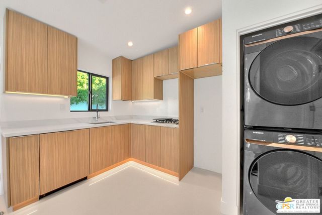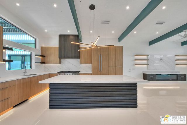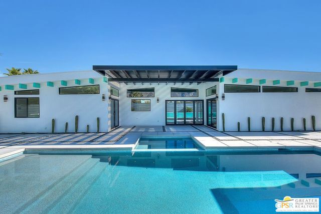 Step inside this gorgeous home and prepare to be impressed. This reimagined William Krisel-designed Alexander beauty truly has that WOW factor. Extensively remodeled and expanded while preserving its iconic mid-century modern architecture, this residence blends architectural pedigree with contemporary desert luxury. Walls of glass and folding patio doors frame dramatic mountain views and seamlessly connect the open-concept interior to the private resort-style backyard featuring a new pool with tanning shelf, spa, outdoor kitchen, and firepit. Highlights include a fully appointed attached ADU, RV parking with hookups, two-car garage, tankless water heater, whole-house water filtration, wine refrigeration, fee-simple land, and no HOA. This rare, turnkey Krisel masterpiece is ready for immediate enjoyment. Call for your private showing.