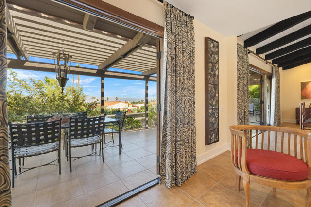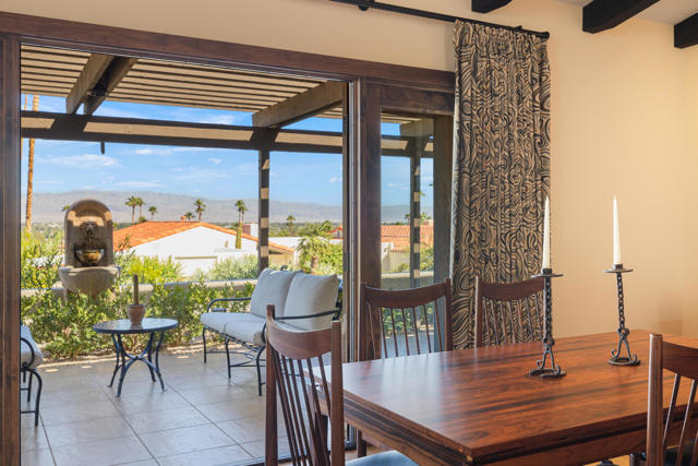 Panoramic Views | Fee Simple Ownership | Thunderbird Villas |Fee simple land with the lease fully bought out, this rare hillside residence in the prestigious guard-gated community of Thunderbird Villas offers true ownership, long-term value, and stronger resale appeal.This beautifully updated 3-bedroom, 3-bath home features an open floor plan with vaulted wood-beamed ceilings, a gas fireplace, and French doors that capture sweeping valley views from the rear and mountain views from the front.All three bedrooms are en-suite, offering privacy and flexibility for both residents and guests.The remodeled kitchen features quartz countertops, stainless steel appliances, and a bright, functional layout designed for both everyday living and entertaining.Additional highlights include solid wood interior doors, smart home upgrades, and a finished garage with its own mini-split system.Outdoor spaces include a gated courtyard with built-in BBQ and a pergola-covered patio, creating multiple areas to entertain against a backdrop of open desert and mountain views.Community amenities include guard-gated entry, pools, maintained grounds, cable, trash service, and golf cart access to Thunderbird Country Club.Impeccably maintained and move-in ready, this is one of the few fee simple homes available in Thunderbird Villas.
