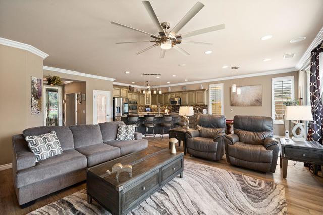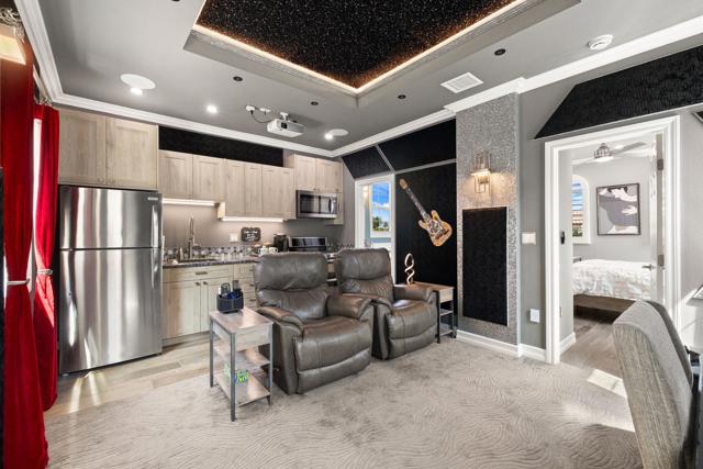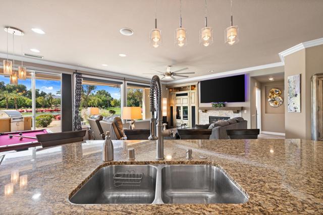Absolutely one of the best views in this Trilogy La Quinta 55+ gated community! This is a VERY rare and unique property! It is the ONLY 4 bedroom most desired Monterey floor plan that includes a newly built (2023) custom detached guest house casita that is legally permitted as an Accessory Dwelling Unit (ADU). It makes a great granny/caregiver flat or it can be rented for 30+ days for $1,200 to $2,800 a month or more depending on the season. The main house has 3 bedrooms and 2 baths and has been completely remodeled from top to bottom with high-end finishes including a newly renovated master bedroom and ensuite bath as of October 2025. Upgrades include a new Lennox AC, Milgard windows throughout, new lighting, black-out curtains in the master and great room, large electric awning, plantation shutters, roller shades, crown molding in all rooms, luxury vinyl plank flooring, wood laminate and porcelain tile in every room. The newly remodeled kitchen has high end ''Champaign'' finished cabinetry including roll outs, soft close drawers and doors, glass backsplash, granite counters, upper cabinet rope lighting, under-cabinet lighting, and a custom pantry door with LED remote controlled back-lighting. There are 10 new designer ceiling fans throughout, including the kitchen, baths, patio, and garage. The great room has a newly remodeled fireplace and mantel with under-mantel rope lighting. The courtyard that separates the house from the casita has a contemporary water feature and a new concrete overlay deck. The detached casita includes a home theater with both a 120'' motorized movie screen and a 65'' flat panel TV, a full kitchen (except dishwasher), laundry room, and a separate bedroom. The casita bath has a large walk-in shower with multiple shower heads with a digital timer and temperature readout. The galley style kitchen has all Whirlpool appliances including a 5 burner double oven range, a microwave, a 2 door refrigerator with ice maker, and a stainless steel sink. The casita boasts both high-end porcelain plank flooring and plush carpeting. The back yard is spacious enough for a large pool/spa or water feature. Garage includes epoxy floors, high-end 'New Age'' 8 gauge steel cabinets, 2 work benches with stainless steel tops, overhead storage racks and wall organizer. Price includes 2 Denon home theater A/V amplifiers, a 4K projector, and a 120' motorized screen. Seller will pay the 1 time HOA's Reserve Assessment Fee of $3,570. Owner is the listing broker