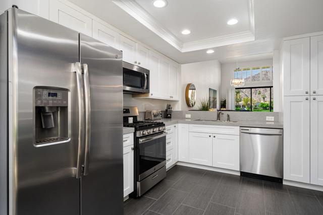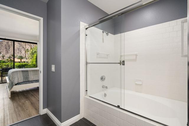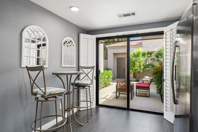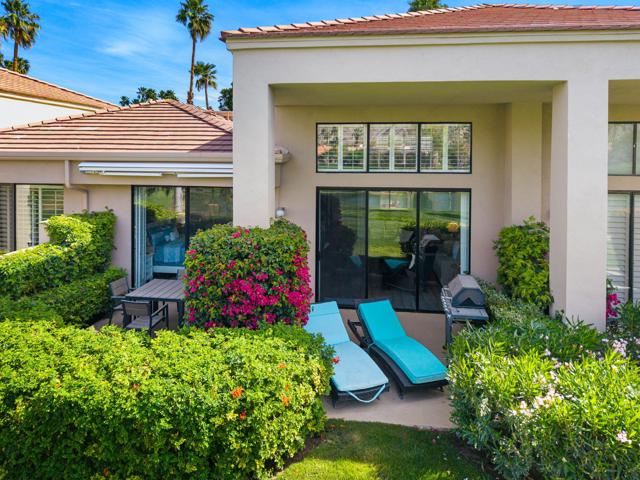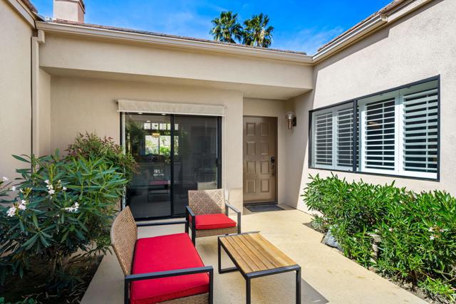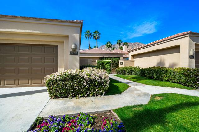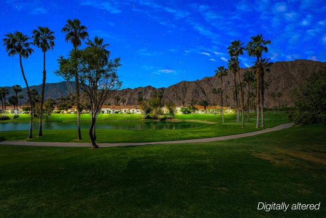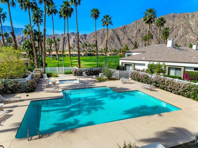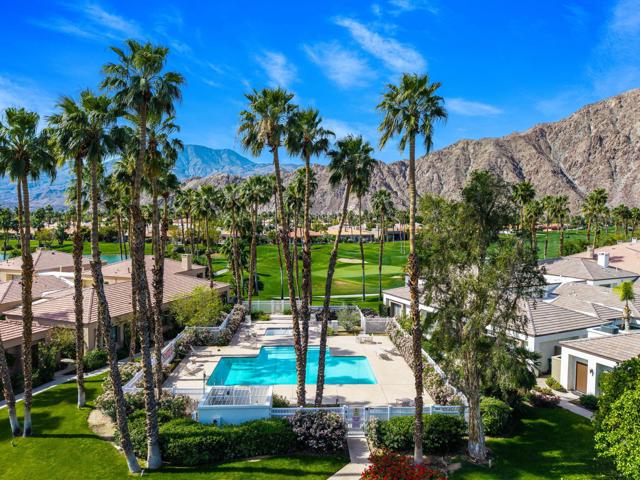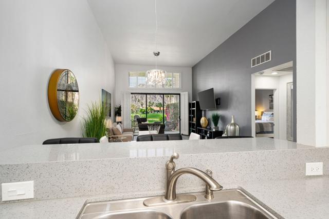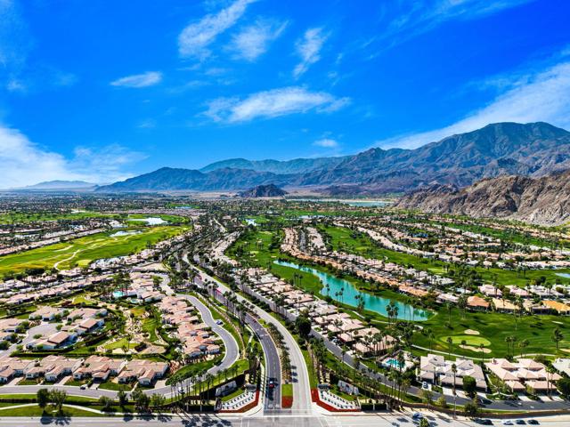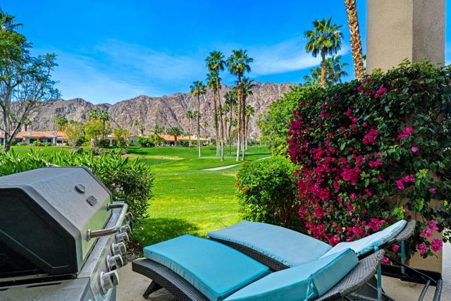 Welcome to your peaceful desert retreat at PGA West. Located on the 6th tee box of the Palmer Private Course, this beautifully updated Champion 1 model offers some of the best western panoramic views in the community. Set back from the cart path in a quiet location, you'll enjoy stunning vistas of the lake, fairway, and the Santa Rosa Mountains, which can be appreciated from both inside the home and right from your private patio.Inside, the open and spacious layout is bright, clean, and completely move in ready. The interior features high ceilings, fresh paint, ceramic tile flooring, and sleek quartz countertops. Large sliding glass doors bring in plenty of natural light and seamlessly connect the comfortable indoor living space with the beautiful outdoor setting. The expansive primary bedroom offers a private ensuite bathroom and direct slider access to the patio. Offered fully furnished per inventory with modern, tasteful decor, this popular floor plan is designed for easy living and effortless entertaining.Whether you're looking for a relaxing vacation home or a permanent residence, this property offers the classic PGA West lifestyle, with community pools and spas just a short walk away.The HOA takes care of just about everything on the outside, from roof maintenance, exterior paint, and pest control to earthquake and exterior condo insurance, plus all front and back landscaping outside the courtyards. Cable and internet are also included with your dues, making this a true lock and leave retreat.