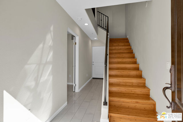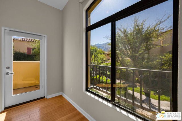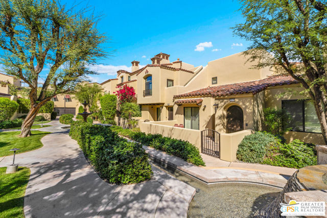 Refined, European-inspired living awaits at 213 Villorrio Drive - a sophisticated two-story townhome in the sought-after gated community of Villorrio, just moments from downtown Palm Springs.This beautifully refreshed 2-bedroom, 2-bath residence offers 1,113 square feet of thoughtfully designed living space, blending timeless character with modern comfort.Light-filled interiors create a warm and inviting atmosphere, while recent upgrades including newer HVAC, tankless water heater, dishwasher, window coverings, and in-home laundry provide true move-in ready ease. A whole-house water softening and filtration system adds an additional level of everyday comfort and quality. The attached two-car garage is a convenience rarely found at this price point and location.The true showpiece is the private rooftop terrace complete with fireplace and mountain views, an ideal setting for sunset gatherings, morning coffee, or quiet evenings under the desert sky.Villorrio is known for its Mediterranean-inspired architecture, lush courtyards, arched walkways, and tranquil ambiance evoking a sense of old-world charm within a secure, gated setting. A beautifully designed community pool, spa, and rolling water feature anchor the neighborhood, complemented by a refined clubhouse, fitness center, and relaxed outdoor spaces - HOA includes structure maintenance, roof, water, trash, cable TV and WiFi. All of this, and just moments from Palm Springs' vibrant dining, shopping, and cultural scene.Perfect as a full-time residence or an effortless pied-a-terre, this is a home where style, comfort, and location come together seamlessly.Opportunities in Villorrio are few, experience it before someone else does.