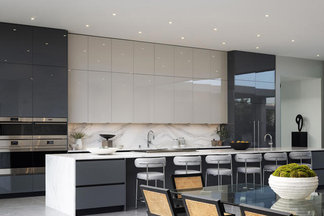 NEW CONSTRUCTION JUST COMPLETED - A stunning ultra luxury lifestyle is presented in this remarkable see-through home walled by floor-to-ceiling Fleetwood glass and doors, flanked by the front pool facing mountains west, and a reflection lap pool to the east. A glass atrium greets you at the front door, replete with a desert olive tree immediately clarifying the light, space and open architecture throughout the plan. The home circulates around the atrium providing long art hallways and glass visages of water throughout. Opposing wings provide a very private massive primary suite balanced by the guest/media rooms, all executed with precision alignments. Large format flooring, a 22 foot social kitchen island and a separate wine room, add style and features to this truly incredible modern estate.