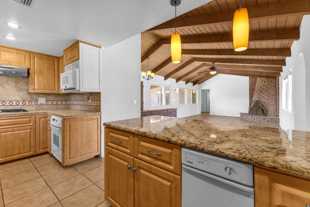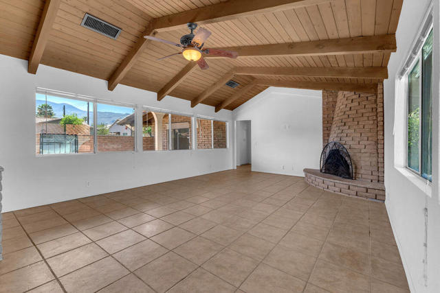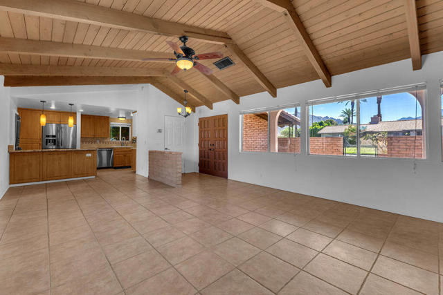 Some homes simply have a soul. This Spanish Revival residence in La Quinta is one of them.Set on an oversized double corner lot with no HOA, the home announces itself with an asymmetrical red clay tile roof - the kind of architectural detail that stops you mid-stride. It's unhurried. Considered. A nod to a time when craftsmanship was the point. The mature landscaping that embraces the property only deepens that sense of rootedness, while the generous lot size affords a sense of space and privacy rarely found at this price point.Step inside to soaring open-beamed ceilings and a flowing, light-filled floor plan that balances social living with quiet retreat. Two distinct living areas - ideal as a home office, library, or dedicated TV room - flank a great room anchored by one of two fireplaces. The updated kitchen is both functional and inviting. Spanish tile accents punctuate the bathrooms with bursts of color and personality, honoring the home's architectural heritage at every turn.At 2,125 square feet, the home breathes. A detached casita offers complete privacy for extended guests, a creative studio, or a work-from-home sanctuary - a rare and valuable addition that expands the possibilities of how this property can be lived in and enjoyed.Outside, the saltwater pool and spa become the heart of the property, whether you're hosting under the desert stars or unwinding as the Peninsular Range turns amber at dusk. The expansive back patio frames panoramic mountain views that never grow ordinary. And the front patio is a quietly perfect place to catch the last light of the afternoon and fall into easy conversation with neighbors - a reminder that the best luxury is often the simplest kind.Three bedrooms, three baths, two fireplaces, and a location minutes from the galleries, restaurants, and boutiques of Old Town La Quinta. No HOA. No compromises.This is not just a home. It's a point of view.