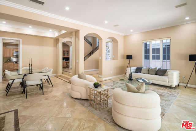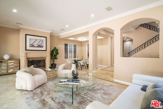This Mediterranean masterpiece in Silver Strand exudes timeless elegance and coastal luxury. Soaring coved ceilings, travertine flooring, and grand French doors invite natural light and create effortless indoor-outdoor flow. The gourmet kitchen, with a center island, top-tier appliances, and a butler's pantry, is a chef's dream, seamlessly connecting to the formal dining area and living room with a cozy fireplace. Outside, the spacious patio is perfect for alfresco dining and relaxing in serene coastal surroundings. Upstairs, the primary suite is a private haven with its own fireplace, sunlit balcony, walk-in closet, and spa-like bath featuring dual vanities, an oversized soaking tub, and a separate shower. Two additional en-suite bedrooms and a versatile study complete the second level. The penthouse-level family room with a wet bar opens to a rooftop patio that offers cool ocean breezes throughout the room. With thoughtful details like two refrigerators and proximity to the beach, this home is the epitome of luxurious coastal living.
