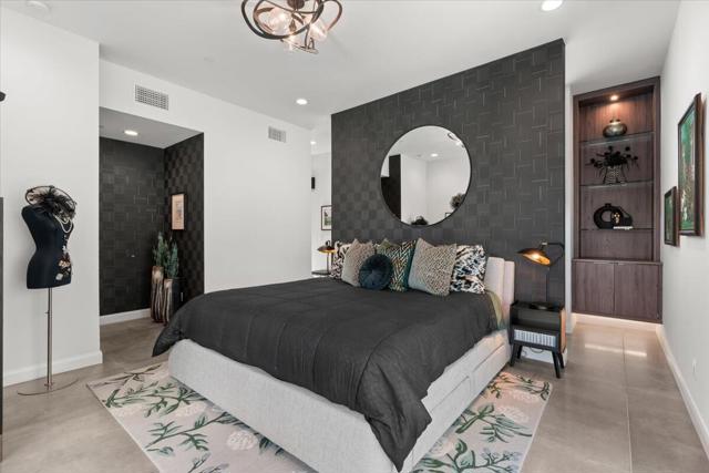Designed with refined luxury, this 2022 trophy home has been conceived for the quintessential South Palm Springs lifestyle and is brimming with designer touches and fixtures! The great room has towering ceilings and walls of sliding glass that completely disappear for the ultimate, seamless indoor/outdoor entertaining flow! The great room, home office, first-floor primary suite, and the detached casita all surround and have direct access to the saltwater pool/spa, outdoor shower and tranquil desert landscaping! The second-floor primary suite has its own large viewing and entertaining deck with postcard-perfect views of the San Jacinto mountains! The stunning and sophisticated epicurean kitchen has an expansive island with an eating bar and high-end appliances including a Thermador vanishing column refrigerator & freezer with soft-touch open, a Thermador 60-inch dual oven with six burners & griddle, dishwasher, and microwave! This private modern desert retreat has a fully paid & owned 16-panel solar system, whole-home water softener, electric blinds, pro landscaping and lighting, security cameras, keyless entry and much more! This one-of-a-kind, spectacular VIP home is offered turn-key, including furniture, local art, accessories, and a fully stocked kitchen. Elan residents enjoy low HOA fees that include access to amenities such as a dog park, bocce ball court, and a resort-style communal pool and spa. The further allure of this home is its A+ location, just minutes from world-class dining, theatre, golf, biking and superior hiking trails--and you own the land!