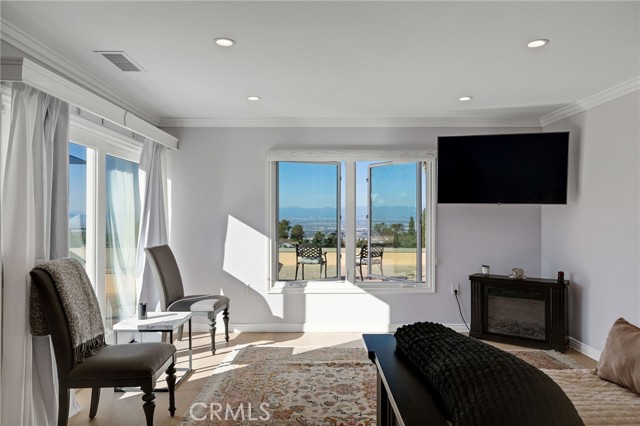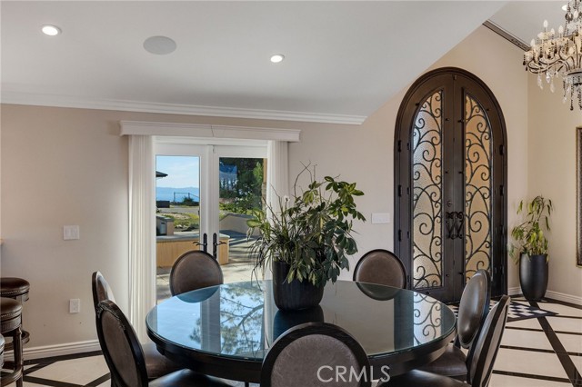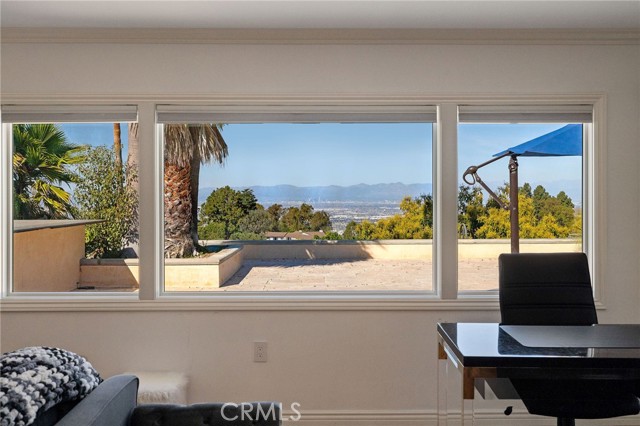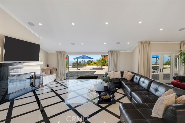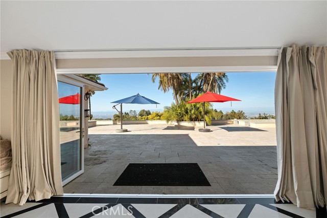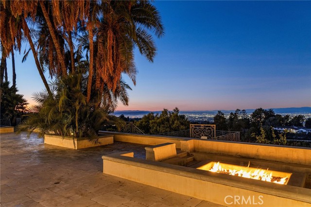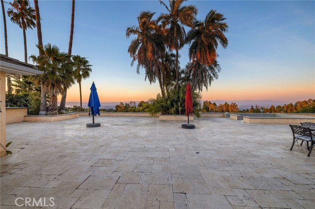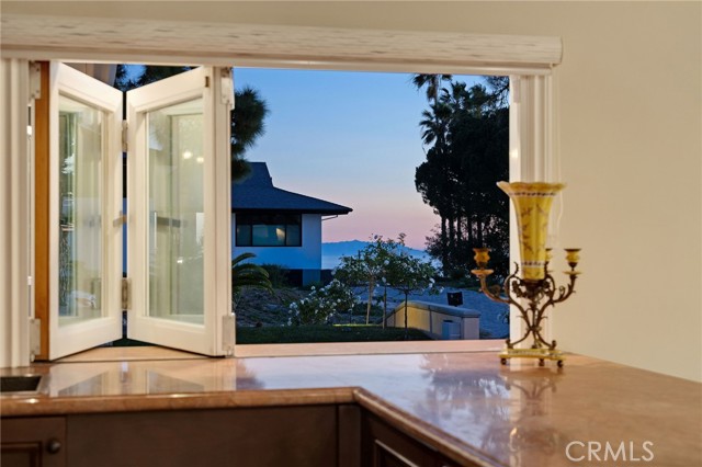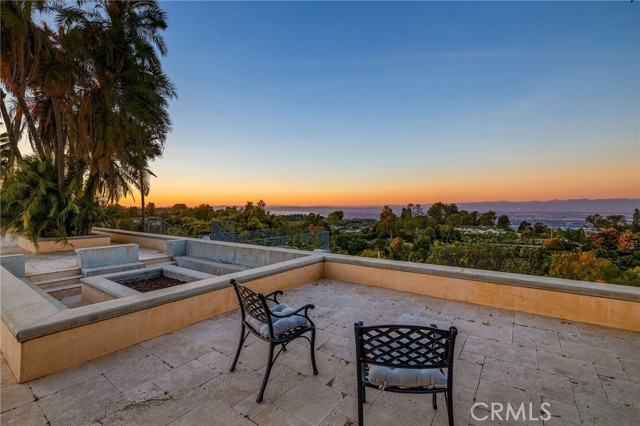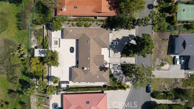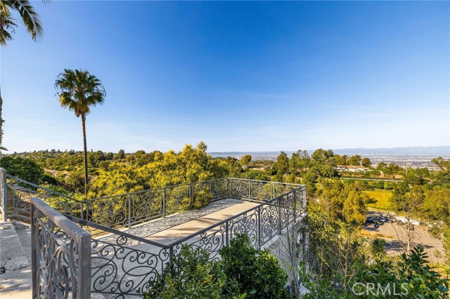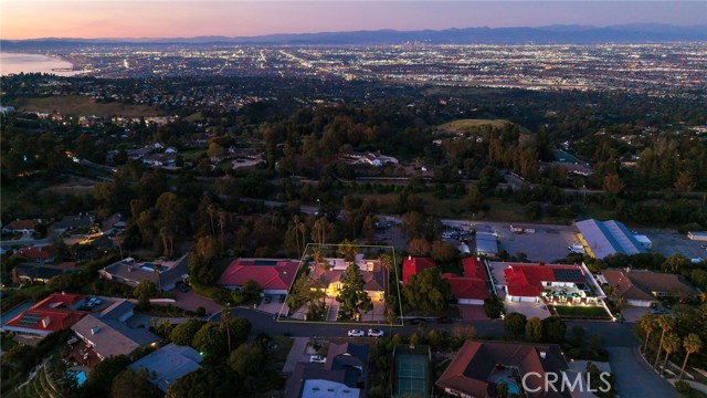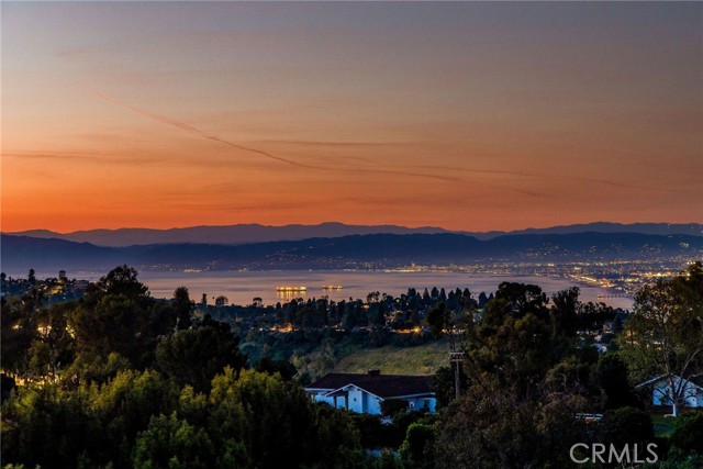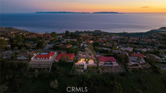 Love at first sight. The circular, stone horseshoe driveway with steps leads you to this thoughtfully curated, extraordinary single level residence with impeccable craftsmanship and breathtaking views, on an over 18,000 square foot lot, set atop on a cul-de-sac in the exclusive and sought after Del Cerro neighborhood of Palos Verdes. As you step inside this remarkable and exquisitely custom-designed home through the grand front doors, you are greeted with a spectacular expansive, open-concept floor plan with soaring ceilings and a wall of windows and bi-fold sliding glass doors, flowing seamlessly, capturing stunning views of city lights and ocean, thoughtfully integrated indoor and outdoor living for effortless entertaining and an uninterrupted serenity. This exceptional floor plan and the sprawling backyard and patio with intricate stonework integrates living, dining and entertaining, a year-round comfort and enjoyment. An impressive signature marble fireplace anchored by two custom hand-painted walls and built-in seating invites extra warmth to the living room. The dining area is adjacent to the elegantly designed bar and an opulent chandelier. A standout feature, a culinary master piece, a tastefully-designed kitchen with twinkling lights, attractive center island and seating, two sub-zero refrigerators, a Wolf stove is ideally situated adjacent to the great room. On the West side, a master bedroom with view, ample closet space and an impressive ensuite bathroom. Three more bedrooms and an attractive bathroom with double sinks and shower and an elaborately designed powder room completes this section. On the East side, the primary bedroom impresses with breathtaking views, a remarkable walk-in closet, and an elegant ensuite bathroom with double Onyx sinks and shower. A separate laundry room with cabinets and a two car attached garage with direct access and a charming bonus room/office (not included in the square footage) completes this section. Other outstanding features include central heating and air-conditioning, recessed lighting, centralized vacuum system, two water filters (one alkaline), Lutton electric lights, two tankless water heaters, a smart home automation and surround sound system throughout, a large fire pit, a built-in barbecue and fruit trees including orange, tangerine, pomegranate, lemon, avocado, kumquats, pears, and passion fruit. A private oasis, to enjoy and build memories for years to come.