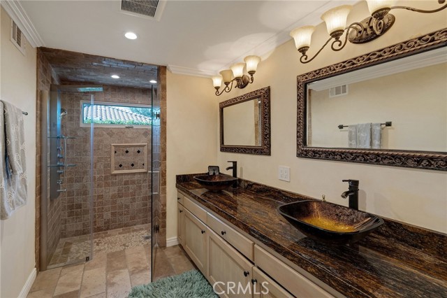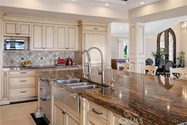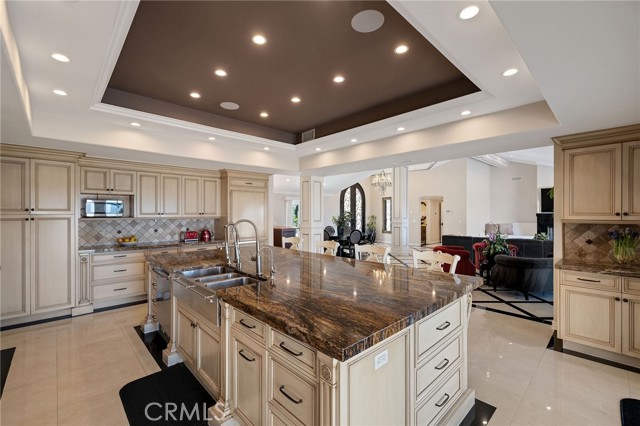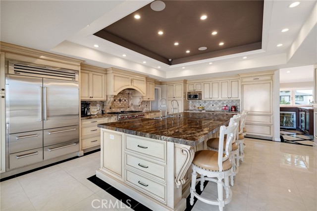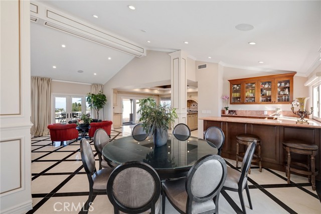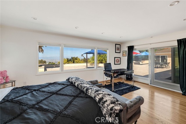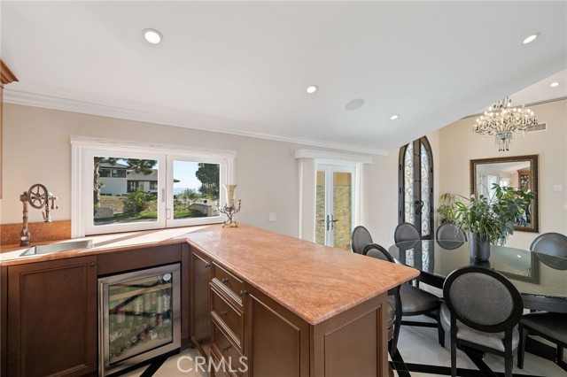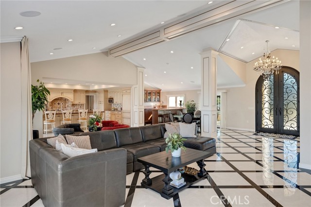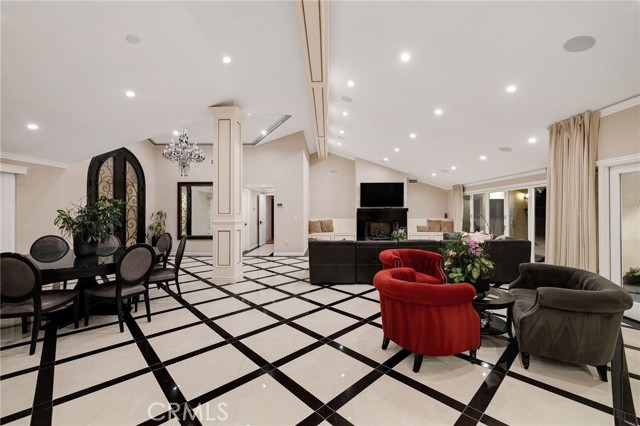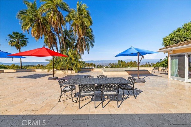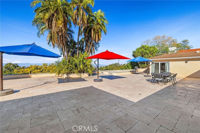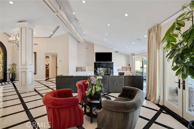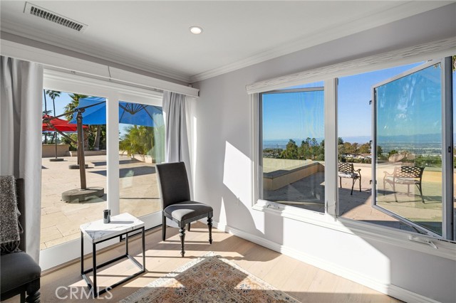 Love at first sight. The circular, stone horseshoe driveway with steps leads you to this thoughtfully curated, extraordinary single level residence with impeccable craftsmanship and breathtaking views, on an over 18,000 square foot lot, set atop on a cul-de-sac in the exclusive and sought after Del Cerro neighborhood of Palos Verdes. As you step inside this remarkable and exquisitely custom-designed home through the grand front doors, you are greeted with a spectacular expansive, open-concept floor plan with soaring ceilings and a wall of windows and bi-fold sliding glass doors, flowing seamlessly, capturing stunning views of city lights and ocean, thoughtfully integrated indoor and outdoor living for effortless entertaining and an uninterrupted serenity. This exceptional floor plan and the sprawling backyard and patio with intricate stonework integrates living, dining and entertaining, a year-round comfort and enjoyment. An impressive signature marble fireplace anchored by two custom hand-painted walls and built-in seating invites extra warmth to the living room. The dining area is adjacent to the elegantly designed bar and an opulent chandelier. A standout feature, a culinary master piece, a tastefully-designed kitchen with twinkling lights, attractive center island and seating, two sub-zero refrigerators, a Wolf stove is ideally situated adjacent to the great room. On the West side, a master bedroom with view, ample closet space and an impressive ensuite bathroom. Three more bedrooms and an attractive bathroom with double sinks and shower and an elaborately designed powder room completes this section. On the East side, the primary bedroom impresses with breathtaking views, a remarkable walk-in closet, and an elegant ensuite bathroom with double Onyx sinks and shower. A separate laundry room with cabinets and a two car attached garage with direct access and a charming bonus room/office (not included in the square footage) completes this section. Other outstanding features include central heating and air-conditioning, recessed lighting, centralized vacuum system, two water filters (one alkaline), Lutton electric lights, two tankless water heaters, a smart home automation and surround sound system throughout, a large fire pit, a built-in barbecue and fruit trees including orange, tangerine, pomegranate, lemon, avocado, kumquats, pears, and passion fruit. A private oasis, to enjoy and build memories for years to come.