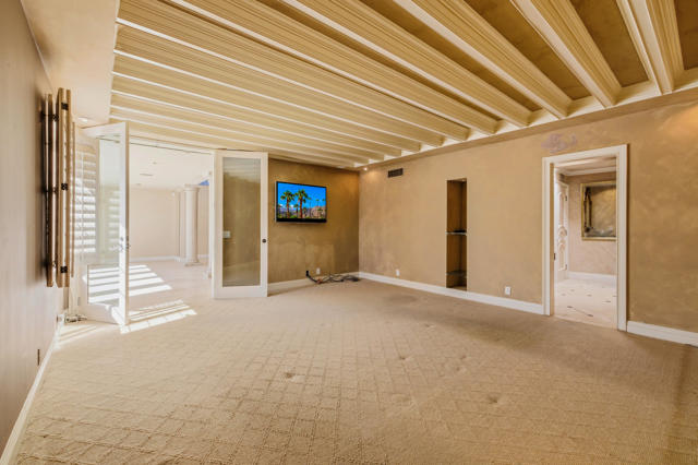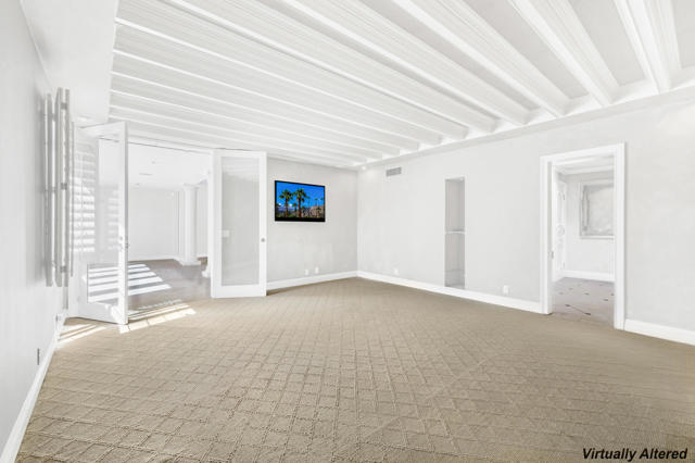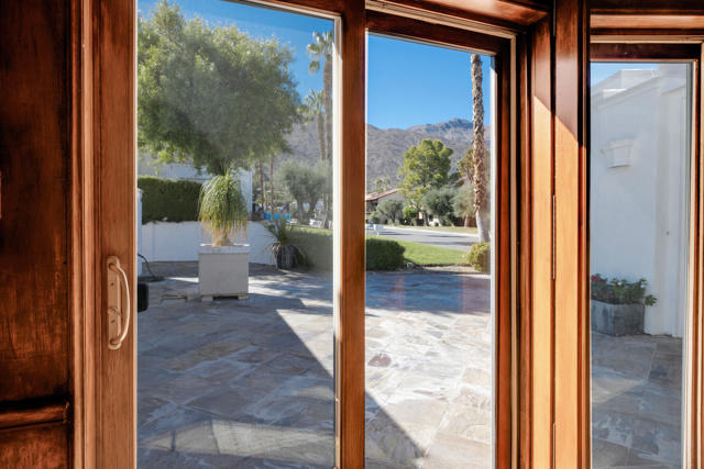 Transform a Krisel designed residence in the iconic Canyon View Estates community in South Palm Springs. Known for defining the Palm Springs modernist movement, architect William Krisel created homes celebrated for their distinctive rooflines, clerestory windows, and seamless connection to the desert environment, all of which are present in this unique property.Offering approximately 2,000 square feet of living space, this is one of the larger condos within the community, providing generous room sizes and a sense of volume that's increasingly rare to find in Canyon View Estates at this price level.The current interiors reflect an extensive custom design, featuring substantial mahogany and walnut millwork, limestone flooring, and detailed craftsmanship throughout the home. For the next owner, this presents an opportunity to shape the space according to their own vision, whether by preserving elements of the existing design or by simplifying and restoring the home to a more traditional midcentury modern aesthetic.The layout includes multiple living and gathering areas, a den with Murphy bed, and a converted carport now used as a third bedroom. This configuration offers flexibility for future changes, including the possibility of restoring the original covered parking, subject to HOA guidelines.Canyon View Estates remains one of Palm Springs' most recognized midcentury modern communities, valued for its architectural heritage, landscaped grounds, community pools, and dramatic mountain views. The neighborhood continues to attract buyers who appreciate design, history, and the opportunity to create something truly their own. Located in the least windy part of town. This is a rare offering for buyers who value architectural character and are prepared to undertake a thoughtful transformation that reflects their own vision and lifestyle. Some images are virtually staged or altered.