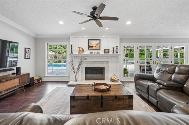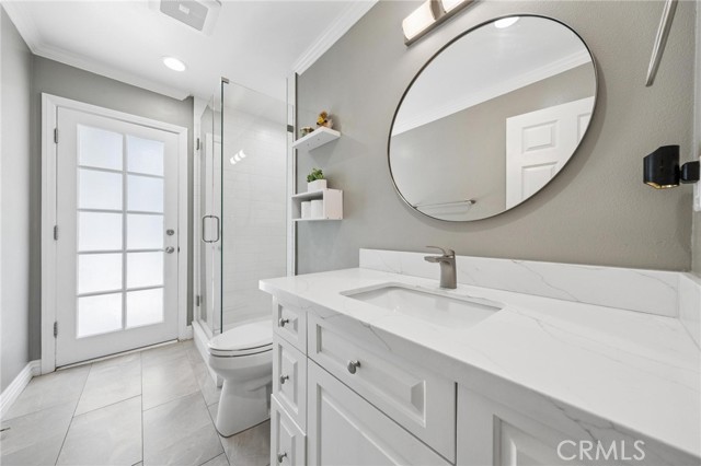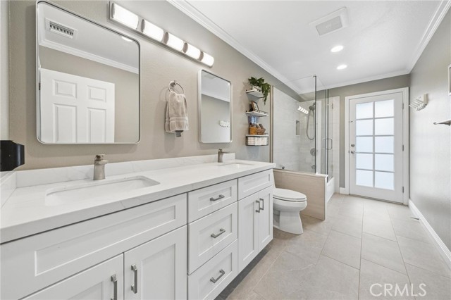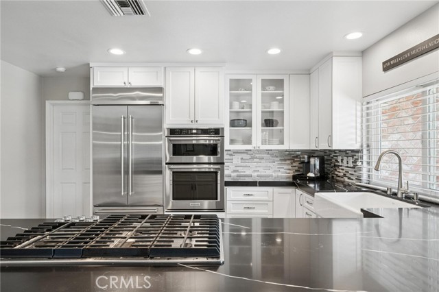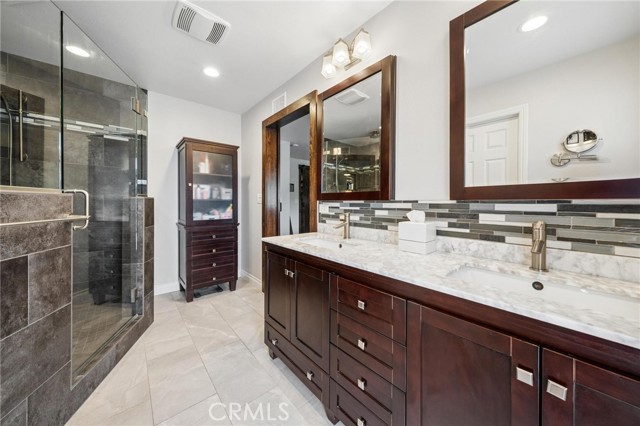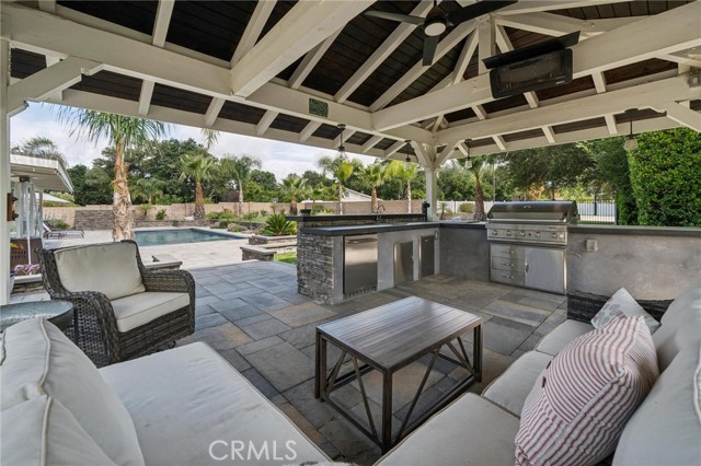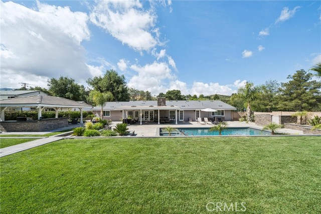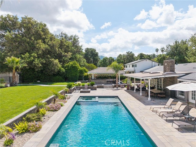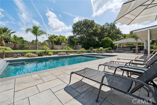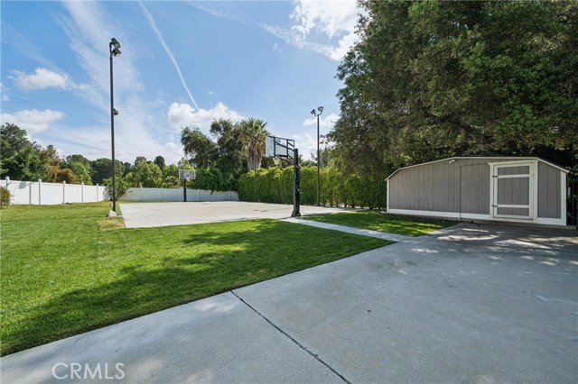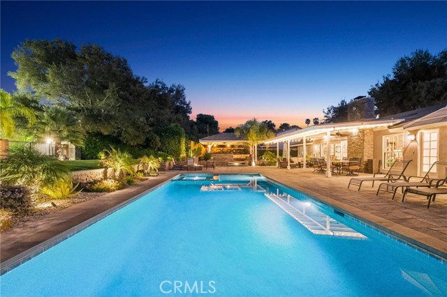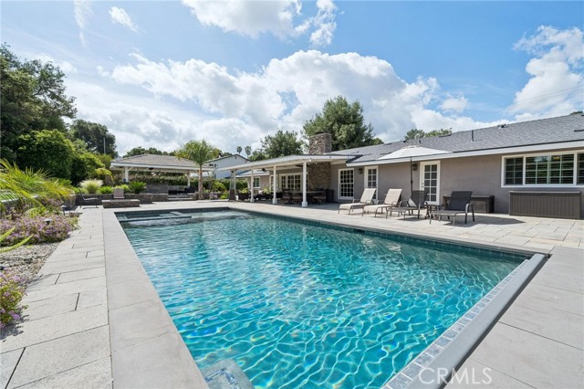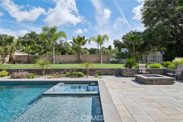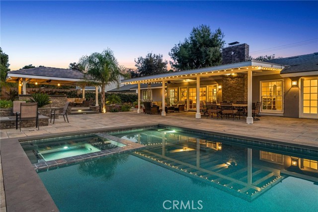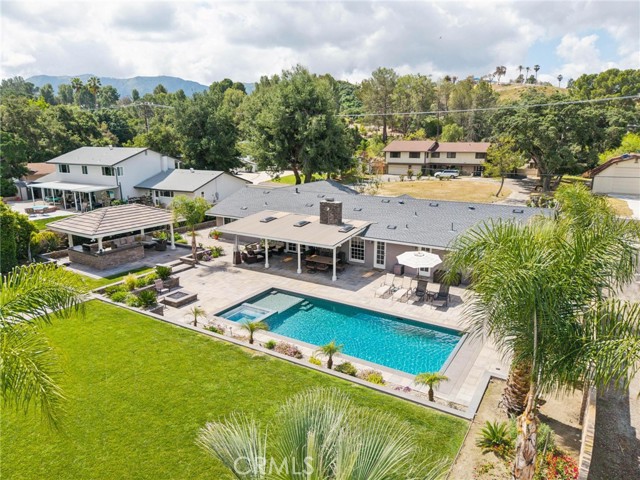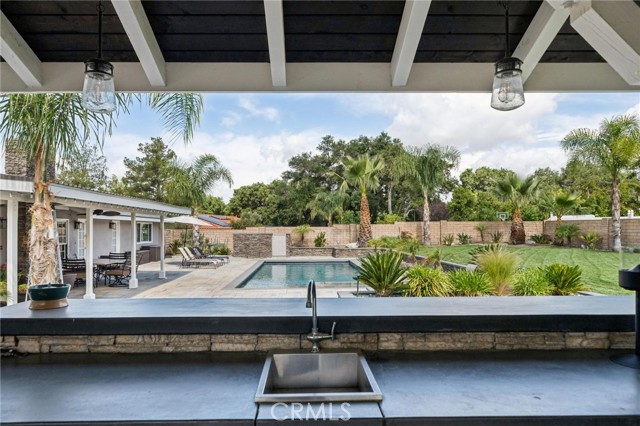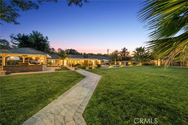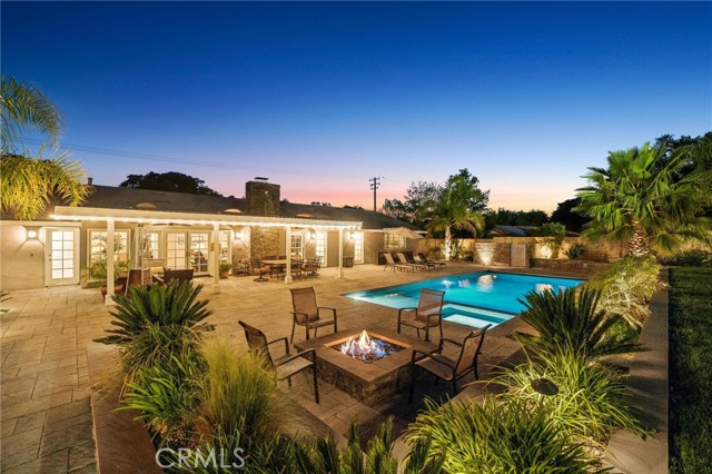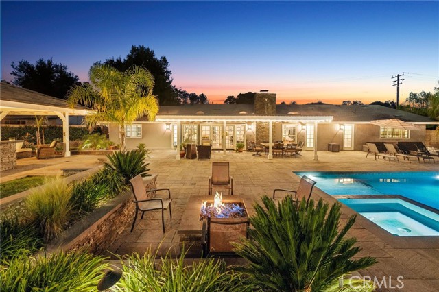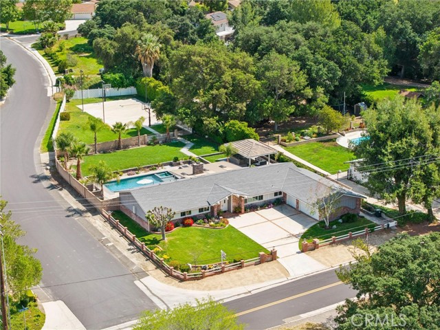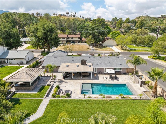 Truly amazing, remodeled Sand Canyon single story pool home on a huge usable lot! Blending the maturity of the beloved "Woodlands" neighborhood with a home that has been recently updated inside AND out, we present this gem of a property. With over two thirds of a usable acre, there are essentially two distinct back yards with the back section offering a lighted tennis/basketball/pickleball court and true RV with private access coming off Clearlake drive. Redone in 2020, the backyard features truly amazing stone paver hardscape, full-sized pool with auto cover, gas fire pit, full length patio cover PLUS a detached gazebo, BBQ and gorgeous stack stone hardscape. Plenty of room to entertain. Inside the kitchen & all 3 full baths have been tastefully redone in current colors and finishes. Structural improvements include newer roof (2023), windows (2017) & Carrier HVAC with ducting and Generac whole house system (2025). Last but definitely not least, the seller converted from septic to sewer (2021). Throughout the home you will feel that it has been consistently updated in a way that emphasizes quality more than cost. Other nice touches include updated lighting, barn doors, crown and base molding and updated flooring. The 5th bedroom has been converted into a huge walk-in closet off the primary bedroom with built-ins. 3-car garage with EV charger too. Featuring the largest yard and home available in this price range without HOA or extra Mello Roos taxes, this is the definition of great value for money. Rarely does a home like this come available!
