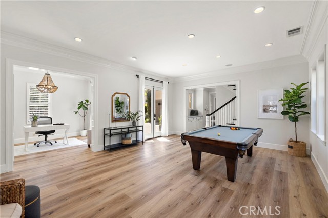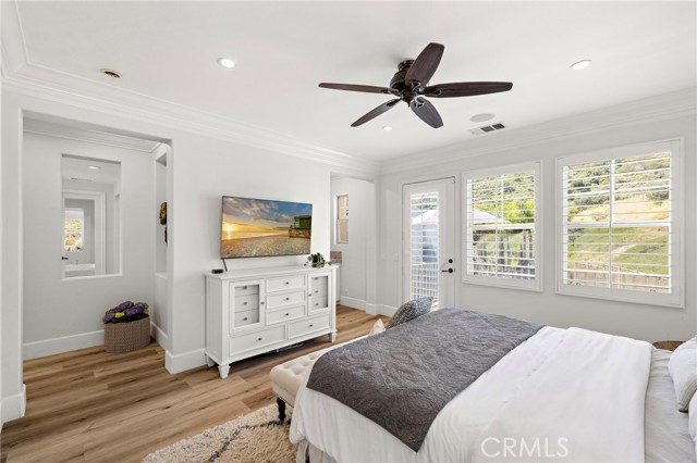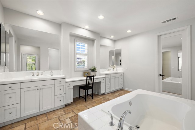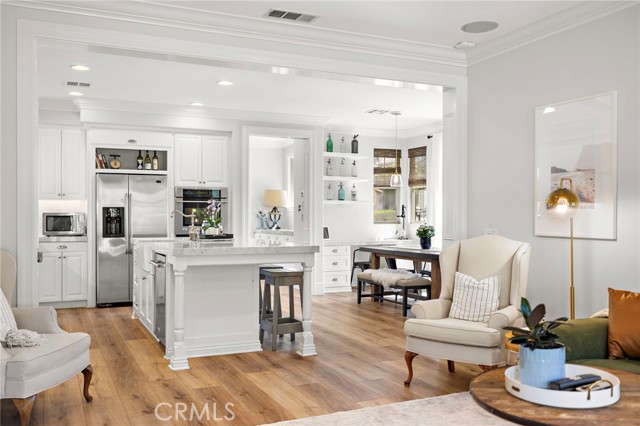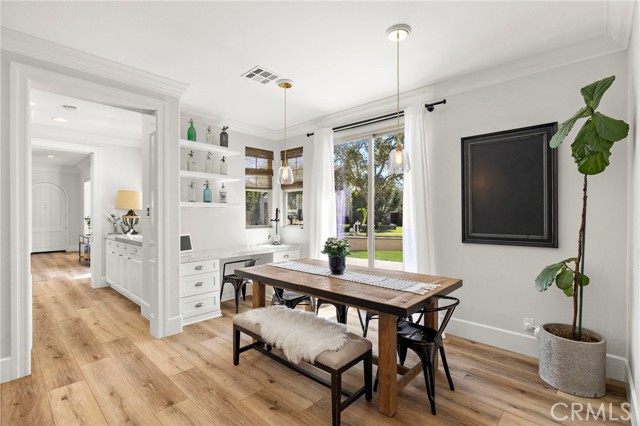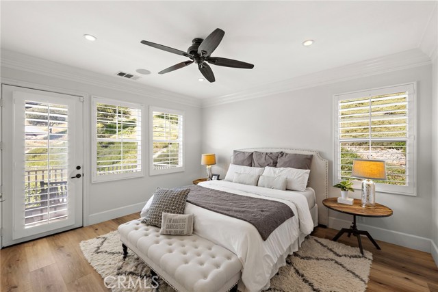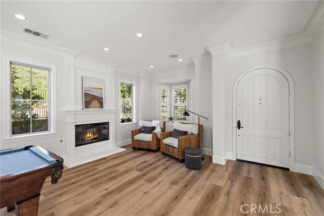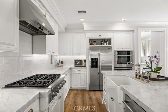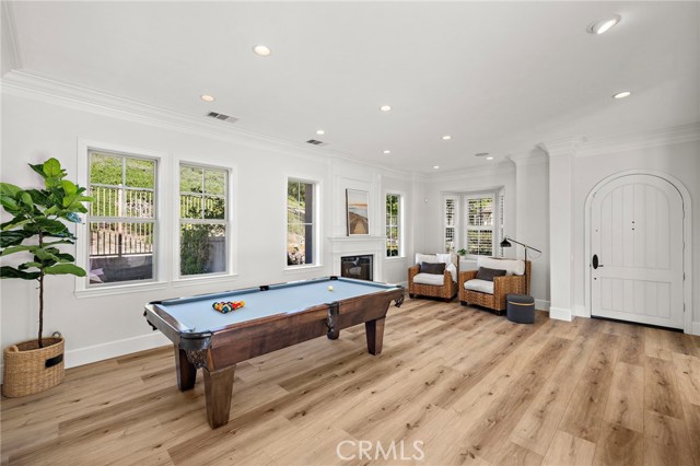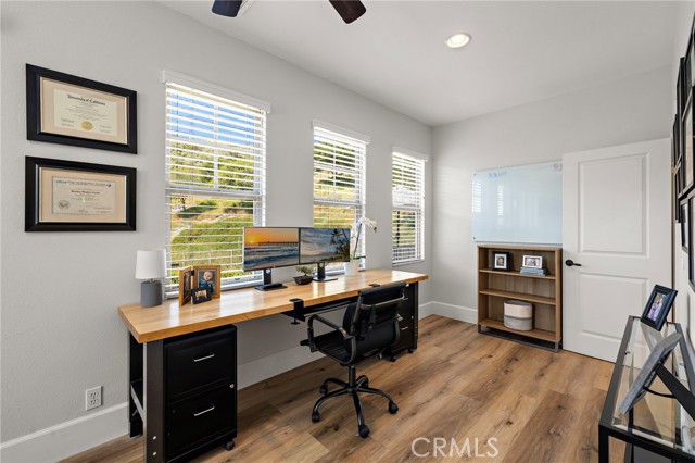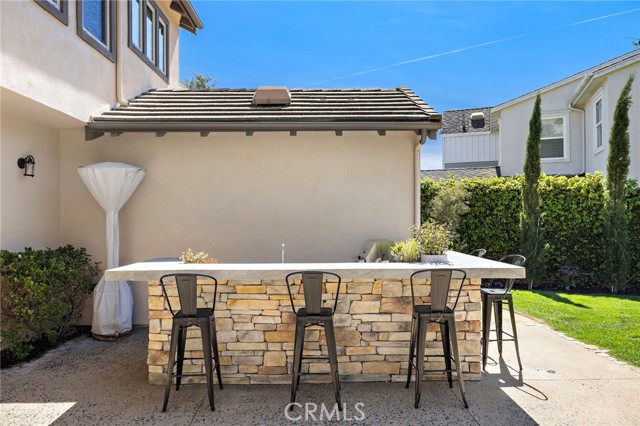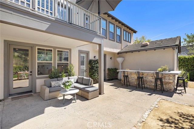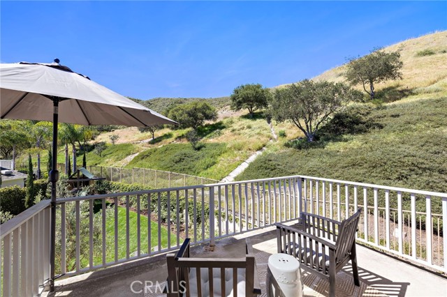 Tucked against a sweeping hillside in Terramor Village, this Evergreen home occupies one of the most private lots in Ladera Ranch - 9,504 square feet with open space directly behind, a pocket park to the side, and only one direct neighbor. A natural hillside backdrop rises beyond the fence, feeling more like an open preserve than a neighborhood lot. The wraparound yard takes full advantage: a putting green, full outdoor kitchen with BBQ, refrigerator, and separate burner, and covered patio create an immediate destination. Room for a future pool remains. A driveway, family garden, and entry porch complete the exterior. Inside, 3,313 sf of bright open living spans four bedrooms, three and a half baths, a main-level office, and a second-floor loft. Two sets of French doors connect indoors to outdoors, exceptional natural light fills both levels, and a bay window enhances the fireplace-warmed living and dining area. Extensive crown molding and detailed doorway framing add craftsmanship throughout. The kitchen anchors the main floor with an oversized marble island with generous bar seating, six-burner cooktop, farmhouse sink, custom pantry, full subway-tile backsplash, white cabinetry, and stainless appliances - flowing into a family room with fireplace, custom built-ins, and surround sound, plus a casual dining space with built-in desk and shelving. An extra-spacious mudroom, powder room with backyard access, and a tandem three-car garage with epoxy flooring complete the layout. Upstairs, the primary suite earns its footprint: hillside views from a private balcony, coffee nook, large walk-in closet, soaking tub, an exceptionally large dual-head shower, sit-down vanity, and a retreat perfect as a second office, gym, or studio. Two secondary bedrooms share a full bath with updated tile flooring; a third enjoys a private ensuite. Recent upgrades: full PEX re-pipe, tankless water heater, new garage door motor, updated faucets, fixtures and lighting throughout, full exterior repaint. Move-in ready without the asterisks. A short stroll reaches Oso Grande Elementary, Butterfly Park, Boreal Plunge, Terramor Aquatic Park, and Founders Park - home to a weekly Farmers Market and Ladera Ranch's beloved 4th of July fireworks. Miles of trails, community pools, a water park, skate park, and year-round events are all part of daily life here. Snow Bush Street is one of Terramor's most beloved and sought after neighborhoods.