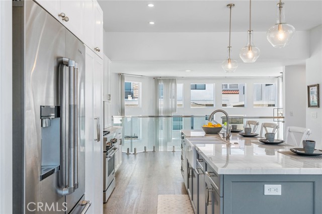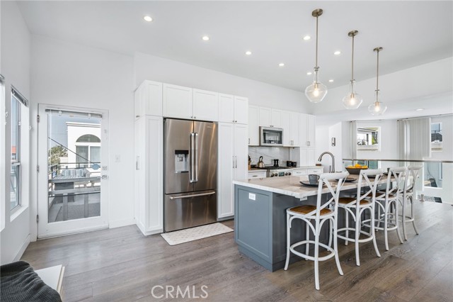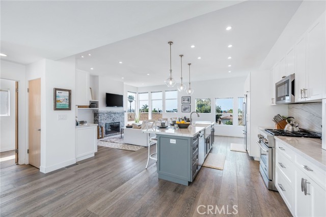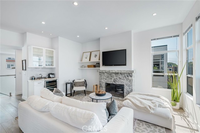 Experience the best of South Hermosa Beach living in this beautifully positioned detached townhome that lives like a single-family home, offering ocean views, abundant natural light, and the relaxed charm of one of the area’s most beloved neighborhoods. Located west of PCH just a few blocks from the beach, the Greenbelt, and South Park, this home captures that rare small-town coastal feel while keeping you connected to everything the South Bay has to offer, including nearby neighborhood cafés, shops, and the vibrant Hermosa Beach lifestyle. Spanning approximately 2,160 square feet, the home features a thoughtfully designed layout that maximizes both views and livability. The upper-level common areas are ideally positioned to capture ocean vistas from every main living space, with expansive windows that flood the home with sunlight and create a bright, airy atmosphere throughout. The updated kitchen is both stylish and functional, appointed with JennAir appliances, Bosch dishwasher, quartzite countertops, and an open layout ideal for cooking, gathering, and entertaining. Wood floors add warmth and sophistication, while the open-concept living areas invite you to relax, host, and enjoy the coastal setting. All three bedrooms are located on the main level, each with balcony access, creating a peaceful retreat separate from the entertaining spaces above. At the end of the day, unwind to the sound of waves crashing from your bed and enjoy the everyday luxury of beachside living. The lower level adds exceptional functionality with a mudd room, laundry room, tool storage, and a rare four-car garage—an incredible amenity at the Beach. There is a shared guest parking space in the driveway. Owner upgrades include New kitchen and appliances, 10' kitchen island, custom lighting, glass railings, coffee bar, Quartz gas fireplace, EV Charger, new water heater and Hardwood flooring throughout. Located within the Hermosa Beach School District. Start living the beach life today.