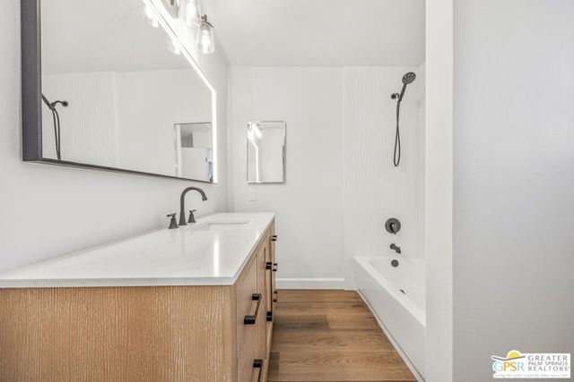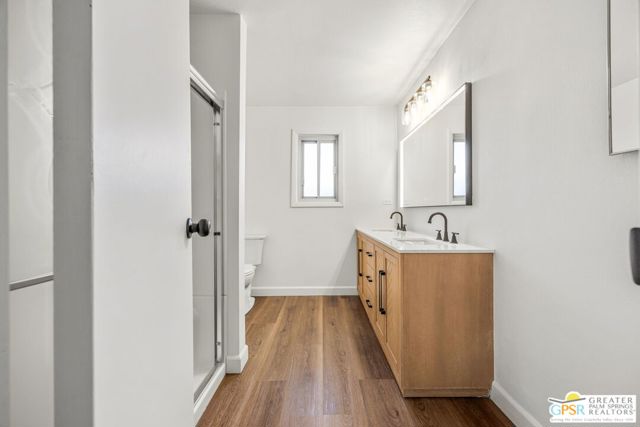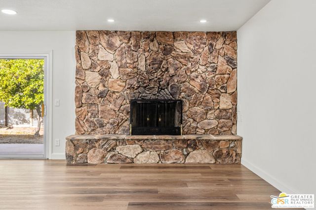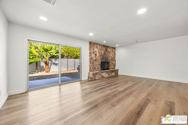 Fully remodeled and move-in ready, this stunning 3-bedroom, 2-bath home offers approximately 2,050 sqft of elevated living on a desirable corner lot in Palm Springs. Blending timeless Spanish-inspired architecture with modern upgrades, the home has been thoughtfully renovated inside and out. The light-filled interior features an open layout, wide-plank flooring, and a beautifully updated kitchen with sleek cabinetry, stainless steel appliances, and clean, contemporary finishes. The spacious living area is anchored by a striking stone fireplace and opens seamlessly to the outdoors through sliding glass doors. Both bathrooms have been fully updated with modern, spa-like finishes, while all three bedrooms offer comfort and flexibility. Fresh exterior paint and desert landscaping enhance the home's curb appeal, while the expansive lot provides ample space to create a custom outdoor retreat. Enjoy breathtaking mountain views and a prime Palm Springs location close to shopping, dining, and all the best the desert has to offer. A great opportunity to own a fully renovated home with style, space, and potential.
