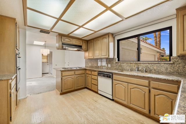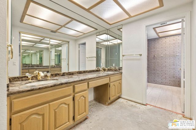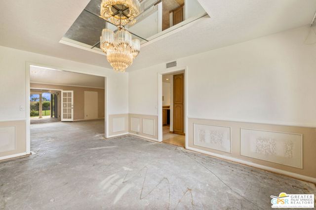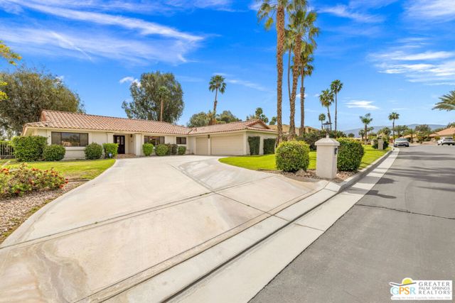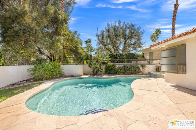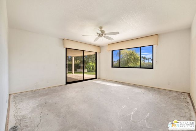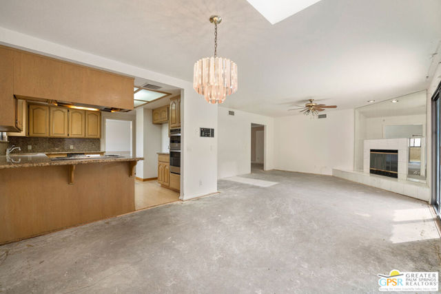 Opportunity meets location at Avondale Golf Club. Set along the 11th fairway on Tandika Trail South, this 3,552 sq ft residence offers formal and casual living areas, refreshing pool and spa with golf course views, great separation of bedrooms, and the chance to create something truly special. Located within the welcoming community of Avondale Golf Club, ownership includes low HOA dues with social membership, access to golf, fitness, tennis, and pickleball - all just minutes from El Paseo, dining, and entertainment. A formal entry opens to a generous living room with vaulted ceiling, gas fireplace, wet bar, and dual sets of French doors that lead to a large covered patio and lush backyard overlooking the fairway. Separate kitchen includes granite counters, stainless appliances, mountain views, and connects easily to both the formal dining room and separate south-facing family room that features a second fireplace, casual dining area, and direct access to the pool and spa. Outside, the combination of pool, spa, lawn, and mature landscaping creates a welcoming setting ready to be refreshed into a standout outdoor retreat. The floor plan offers excellent bedroom separation. The Primary Suite with private bath enjoys fairway views and includes a spacious retreat perfect for an office or lounge. Junior Ensuite Two also captures backyard views with its own bath, while Bedroom Three offers mountain views and convenient access to a hallway bath. Additional features include a separate laundry room with sink and direct access to the attached three car garage. The home has been prepped for its next chapter, with carpeting removed to expose the concrete slab - offering a clean starting point for new flooring and presents an ideal opportunity for a fresh interior palette. Move in and update over time or reimagine the home into a fully modern desert retreat. Strong bones, great views, and exceptional potential - this is a value-driven opportunity in a prime golf course setting.