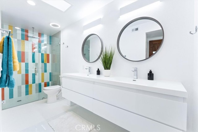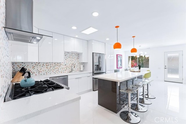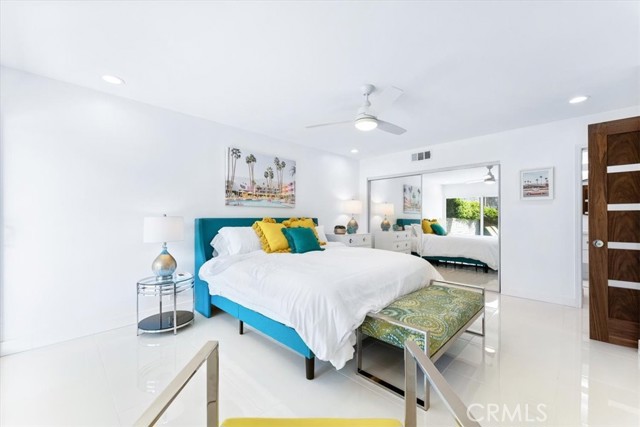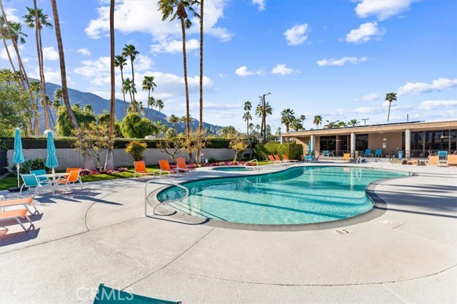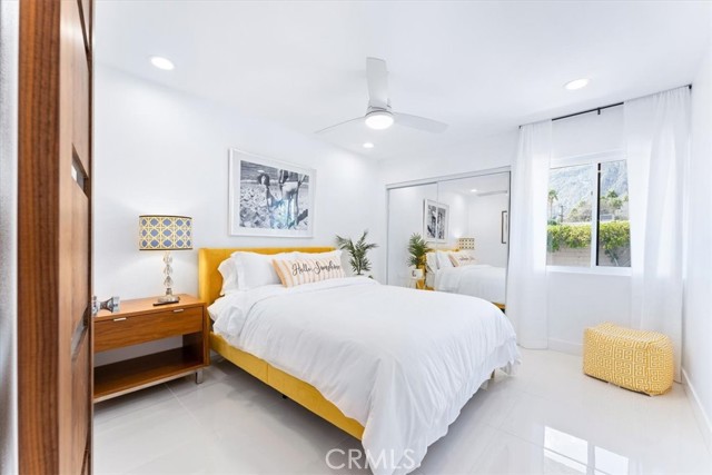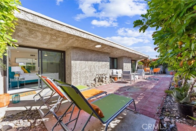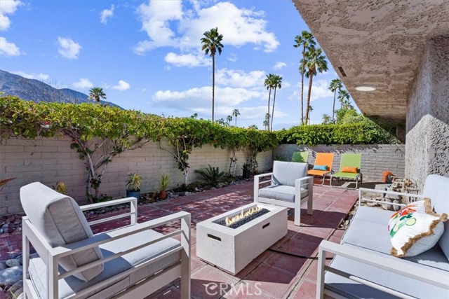 Absolutely fabulous with a quintessential Palm Springs vibe! A reimagined, remodeled and beautifully upgraded single story 3 bedroom 2 bath condo in the highly sought after Gated community of Ramona Villas. Designed by the renowned architect Richard Harrison of the Wexler and Harrison fame and perfectly situated in the popular Warm Sands neighborhood. A mile from all of the excitement of Downtown Palm Springs yet a peaceful retreat for your seasonal retreat enjoyment! Come enjoy the always enticing Palm Springs lifestyle for a month or more in this Fully Furnished, high end contemporary mid century mod styled home. Highlights include an open main living area with WOW inspiring finishes throughout. Custom cool white tile flooring, a showplace kitchen with brilliant white lacquer finished cabinetry, huge grey lacquer finished island with seating for 4, custom quartz counters, custom Palm Springs confetti backsplash, a Forno 6 burner range, wine and bev fridge and stainless appliances. The sensational baths feature giant custom tiled showers and white lacquered vanities. There's even blue tooth speakers in each bath exhaust vent to stream your favorite tunes or podcast while showering. The spacious bedrooms are comfy and inviting and offer exceptional views of the mountains. Sliding doors from the living area and the primary suite open on to the enormous private patio and lounge area. Sit back and enjoy the spectacular west facing mountain views, catch some rays, show off your skills on the BBQ, enjoy an alfresco meal, relax with a beverage by the fire feature or just chill and take in the sunset or the starlight sky. The home comes with 1 covered carport as well as open parking for you and your guests. There is also an interior laundry closet with a full size washer and dryer! The extremely well maintained and visually appealing community offers a splendid large pool and spa area, a gym, a clubhouse and a tennis court for your enjoyment. There are also 4 EV chargers for your convenience! This home personifies Palm Springs Living. Come Enjoy it All! Rates do vary based on time of year.