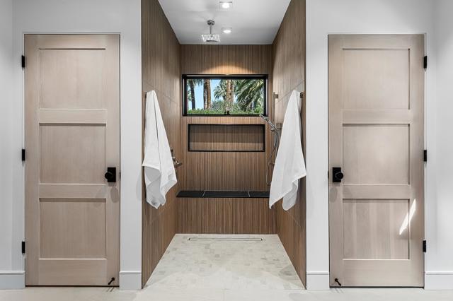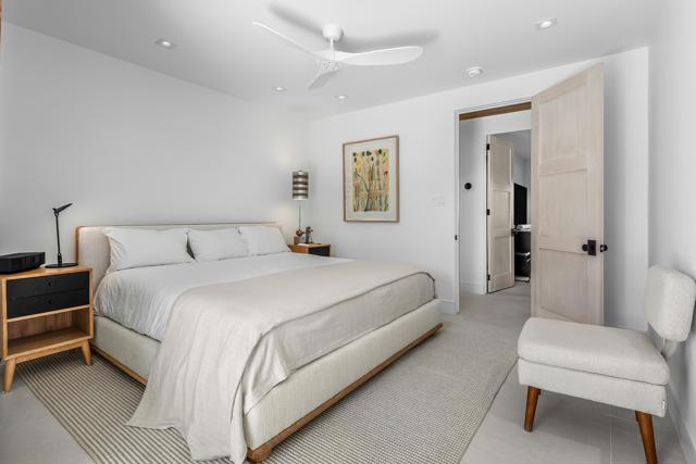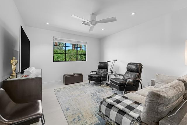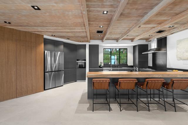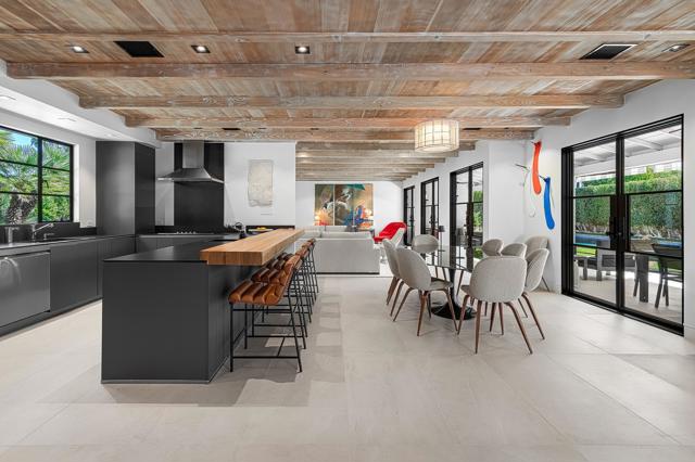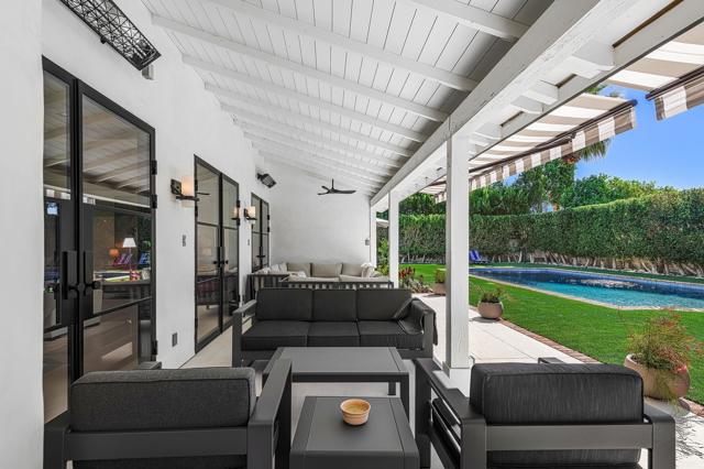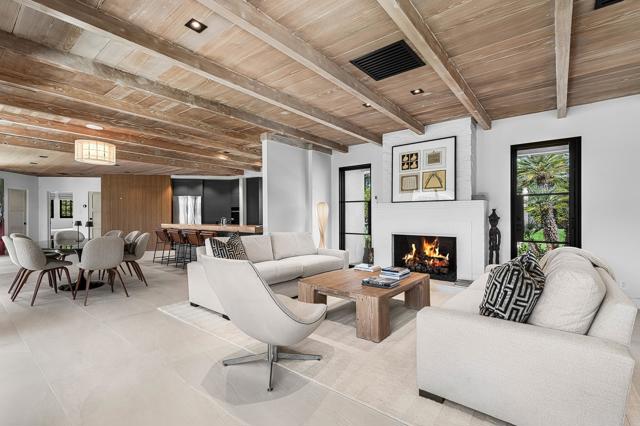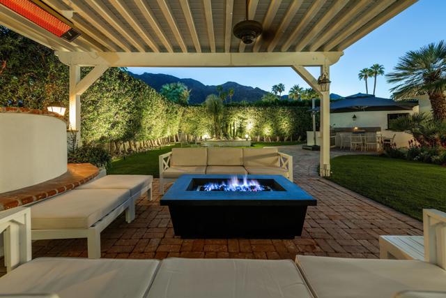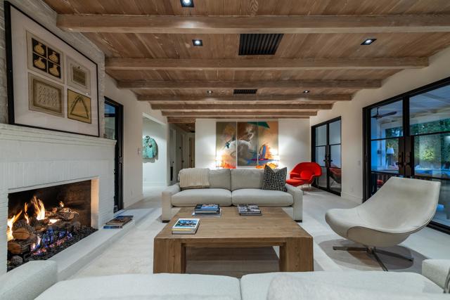 Welcome to this enchanting, fully reimagined residence tucked behind walls and lush hedges in prestigious Old Las Palmas. Originally built in 1946, this classic ranch was taken to the studs and transformed into a striking modern contemporary, thoughtfully designed for seamless indoor-outdoor living and effortless entertaining, completed in 2025.Enter through the pedestrian gate into a private, garden, where newly curated landscaping, vibrant florals, and premium artificial turf create a true sense of arrival. Inside, the transformation unfolds into a stunning great room with an open-concept design, flooded with natural light and anchored by a statement fireplace that brings warmth and ambiance to the space.The home offers three well-appointed bedroom suites, plus a versatile fourth bedroom currently used as an office/media room. A third bath functions as a powder room while also providing a shower connection to the fourth bedroom.At the heart of the home, the chef's kitchen is a masterpiece of both form and function, sleek, seamless, and thoughtfully concealed. Custom flush cabinetry and shuttered elements reveal hidden features including a dry bar, ice maker, and integrated storage for dishware, glassware, and small appliances. An eating bar, breakfast nook, and dining area all overlook the resort-style backyard, creating a natural flow for everyday living and entertaining.Multiple doors open to create a true indoor-outdoor experience, extending the living space into a beautifully designed outdoor retreat. Enjoy the expansive entertaining area complete with an outdoor kitchen, fire pit lounge, and an automatic shade structure that stretches across the yard for added comfort.The west-side bedroom suite offers privacy for guests or flexible use, while the primary suite, positioned on the east end of the home, is a tranquil retreat accessed through double doors. Designed for comfort and relaxation, it features its own A/C, automatic shades and drapes, and ceiling fan. The spa-inspired primary bath includes a walk-in shower, Toto toilet, dual vanities, and a convenient stacked laundry.An additional guest suite overlooks the pool and garden, with the office/media room just across the hall, offering flexibility for modern living.Additional highlights include a two-car garage with epoxy floors and enhanced ceiling insulation, plus additional side parking. The property sits in a prime interior location with southern exposure and beautiful mountain views.