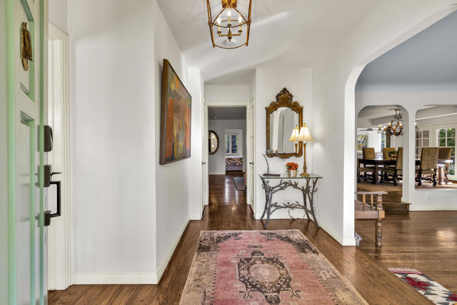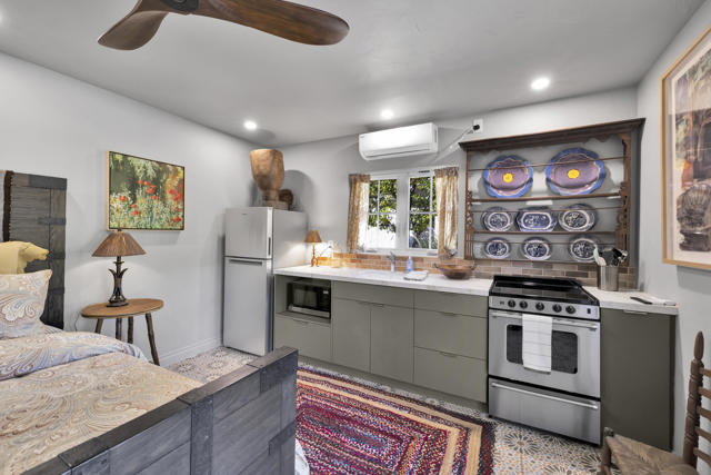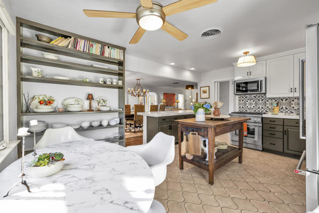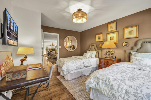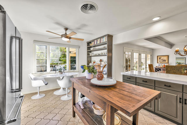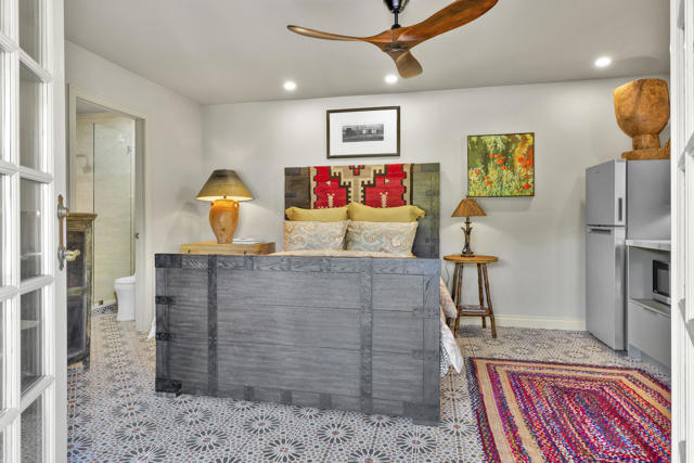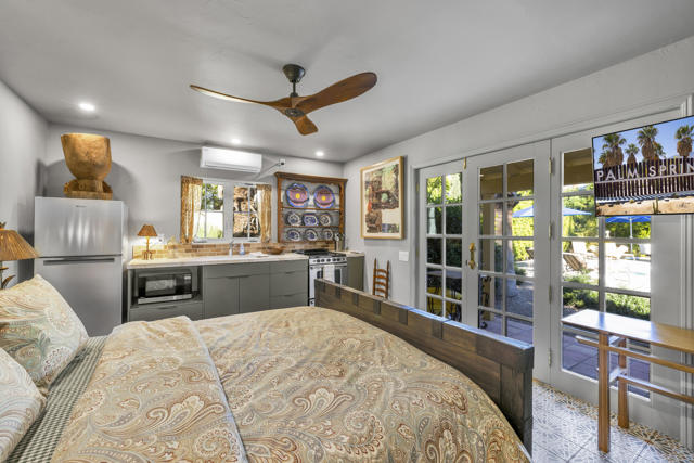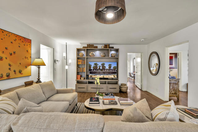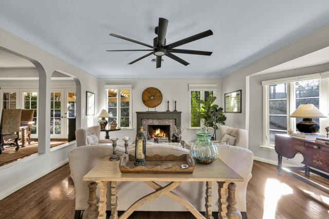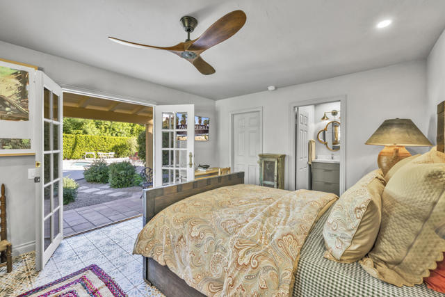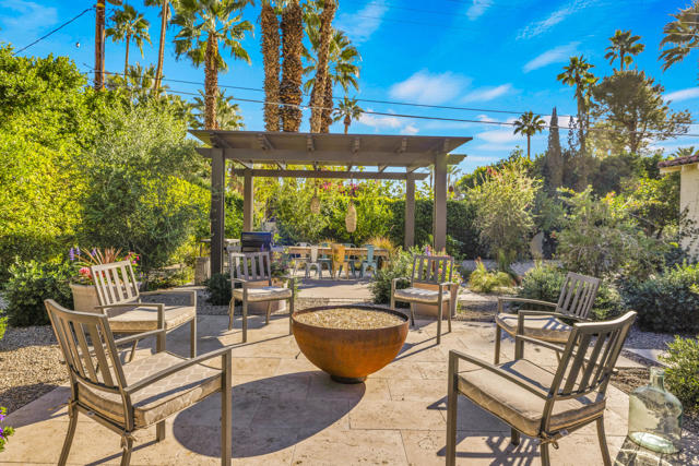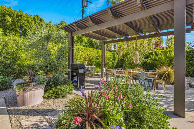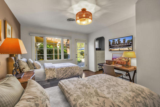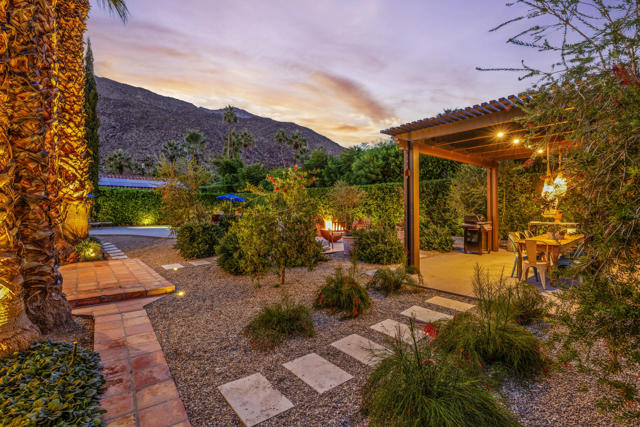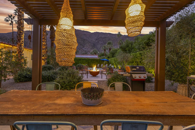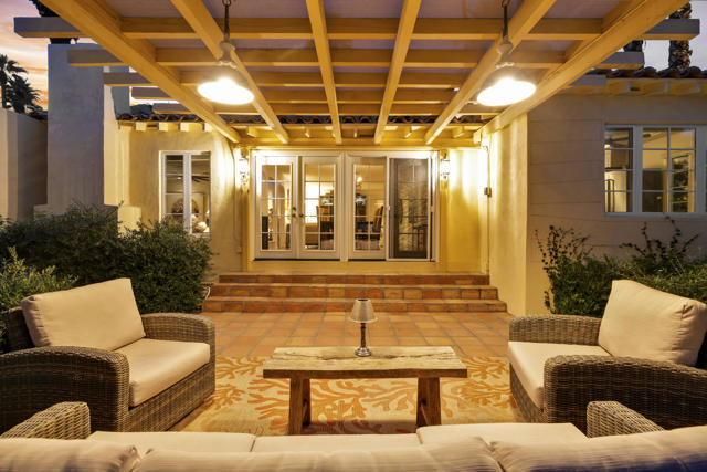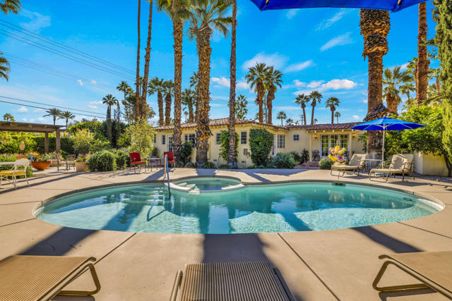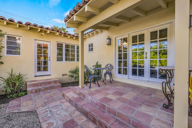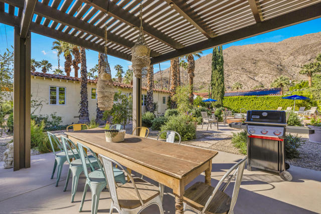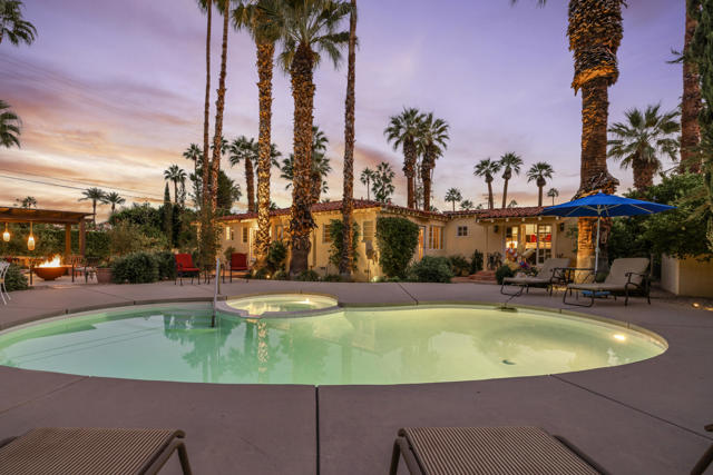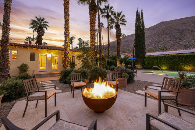 The Mesa | Spanish Colonial Revival with Guest Casita and Mountain ViewsNestled against the majestic San Jacinto Mountains, The Mesa has long been one of Palm Springs' most coveted and storied neighborhoods. Established in 1921, this secluded enclave--often called the ''Hollywood Hills of Palm Springs''--is celebrated for its lush landscape, wind-sheltered microclimate, and rich history of celebrity residents.This lovingly restored 1948 Spanish Colonial perfectly captures the area's timeless allure. Beyond the welcoming entryway, refinished original hardwood floors lead into a step-down living room framed by a bay window and centered around a cozy fireplace. Graceful archways connect the living and formal dining rooms, while an adjacent sitting area offers a relaxed space for media or conversation.The remodeled kitchen opens seamlessly to both formal and informal dining spaces, ideal for modern entertaining. The home offers four bedrooms and four baths, including a private-entry casita with kitchenette and direct access to the pool--perfect for guests or extended stays.Outdoors, the generously sized backyard unfolds as an entertainer's paradise. A charming patio off the dining room invites intimate after-dinner conversations, while a dining pergola beneath the stars and a rustic steel fire feature create an ambiance of desert elegance. Completing the scene are a classic swimming pool and spa, all set against the dramatic backdrop of the rugged mountain range.A rare opportunity to own a piece of Palm Springs history--where Spanish Revival architecture meets effortless California living.