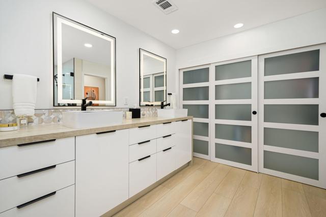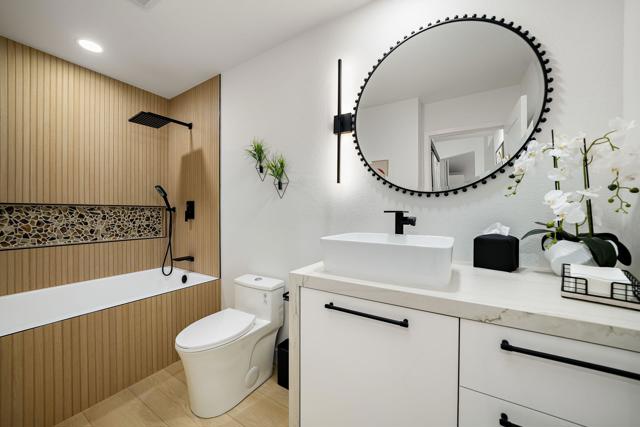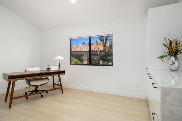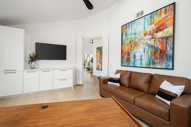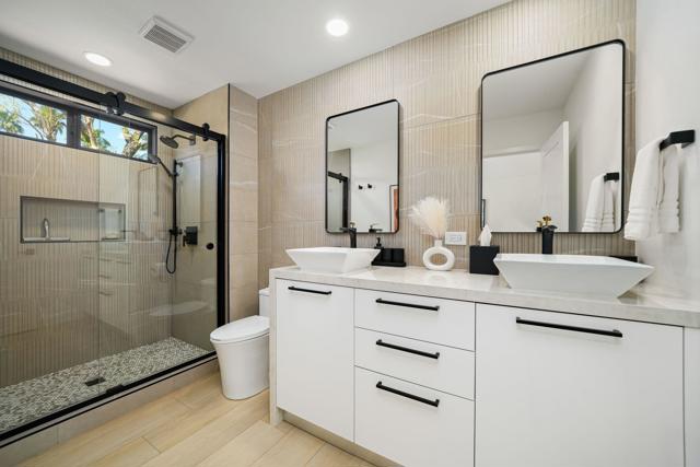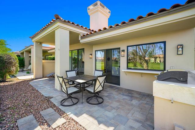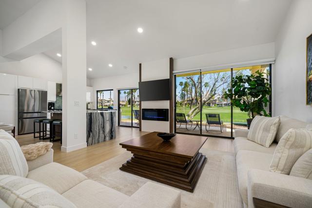 BEAUTIFULLY REIMAGINED, TURNKEY FURNISHED & SHORT-TERM RENTAL FRIENDLY--THE ULTIMATE DESERT DREAM HAS ARRIVED! Welcome to 38306 Gazania Circle, a single-story condo located within the prestigious Palm Valley Country Club. Perfectly positioned along the Ted Robinson-designed Challenge Golf Course, this prime end-unit captures sweeping golf course, lake and mountain views. This highly sought-after and fully remodeled 'Sycamore' plan offers 3 bedrooms, 3 bathrooms and over 1,900 Sq.Ft. of thoughtfully designed open living space. The kitchen is a true showpiece, featuring soft-close cabinetry, sleek natural stone countertops, a waterfall island with counter seating, a granite composite sink, and a full suite of stainless steel appliances. Soaring ceilings and plank vinyl flooring flow throughout, creating a bright and airy ambiance. Additional highlights include an indoor laundry room, electric fireplace and a stylish bar nook for added convenience. Two of the bedrooms serve as en-suite retreats, complete with walk-in showers, dual vanities with vessel sinks and matte black fixtures, while the guest bath showcases a luxurious soaking tub and shower combination. The third bedroom offers versatile use as a guest room, office, or flex space. Step outside to an expanded paver patio with a built-in BBQ area, perfect for unwinding while taking in the serene surroundings, an additional privacy patio is located off the primary. The 2-car garage includes an additional refrigerator and built-in storage cabinets, and is just steps from one of the many community pools and spas. Palm Valley Country Club is one of the desert's most iconic active lifestyle communities offering resort-style amenities and memberships options for golf, tennis, pickleball, aquatic, fitness and spa enthusiasts alike. A true move-in ready opportunity, ideal as a primary residence, luxurious seasonal retreat, or income-producing short-term rental investment - this is one you don't want to miss. Schedule your private showing today!
