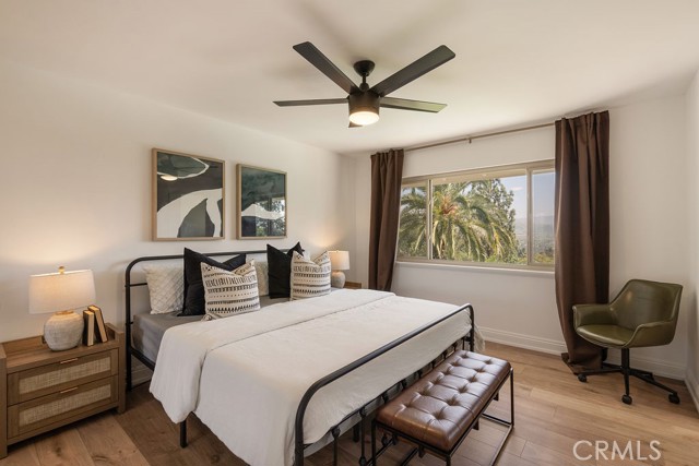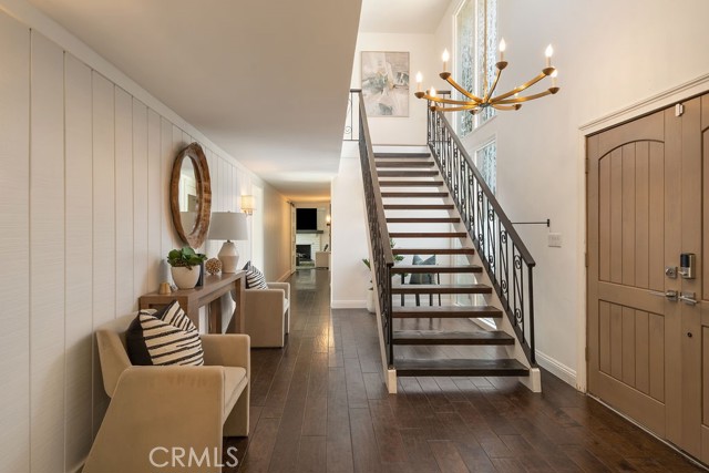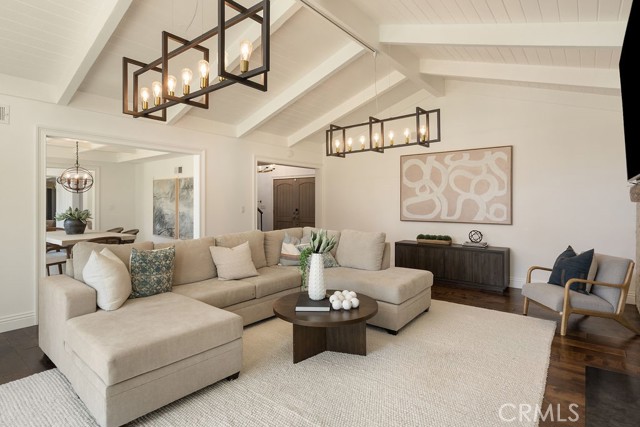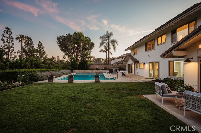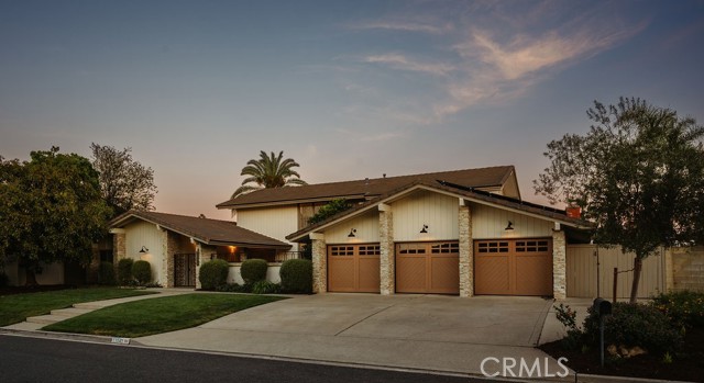 Set on one of Lemon Heights’ most sought-after streets, this 3,843 sq ft custom view home offers 5 bedrooms and a rare blend of scale, light, and elevated living. Hunting Horn is a coveted, wide and flat street of custom homes, ideally located just moments from Bent Tree Park and one of the few streets in North Tustin offering both coastal and canyon views. Vaulted beamed ceilings and expansive windows flood the main living spaces with natural light, creating an open, airy feel with effortless indoor-outdoor flow. The kitchen connects seamlessly to both formal and casual living areas, while the oversized family room offers the flexibility to gather, unwind, or reimagine the space to fit your lifestyle. A highly desirable main-level primary suite feels like a private retreat, complete with a beautifully updated bath featuring a freestanding tub, walk-in shower, and dual vanities. Upstairs, four spacious bedrooms capture peaceful views of surrounding greenery and Peter’s Canyon. Recent improvements include dual-zone air conditioning, all new ducting, solar with three Tesla batteries, a Vivint-owned security system, custom garage doors with new smart motors, and a remodeled laundry room. Set on a 14,500 sq ft lot, the backyard is designed for both laid-back days and lively weekends, featuring a pool, expansive lawn, citrus trees, terraced gardens, outdoor shower, and RV potential-offering space to play, entertain, and truly enjoy the setting.