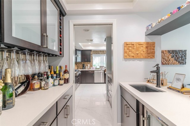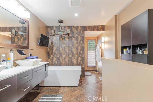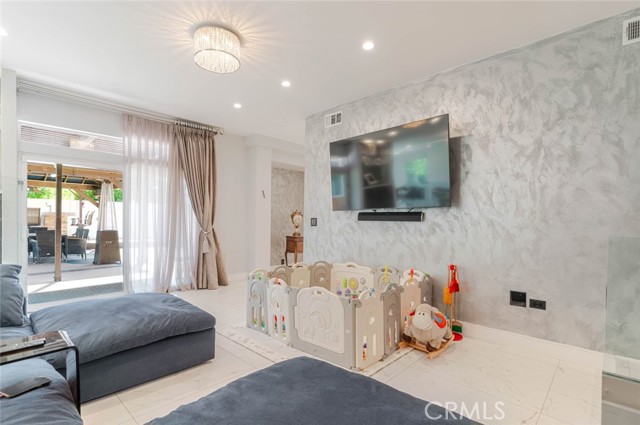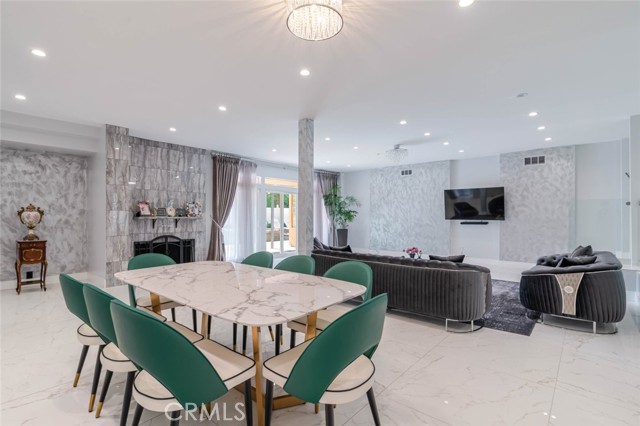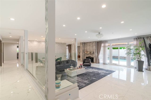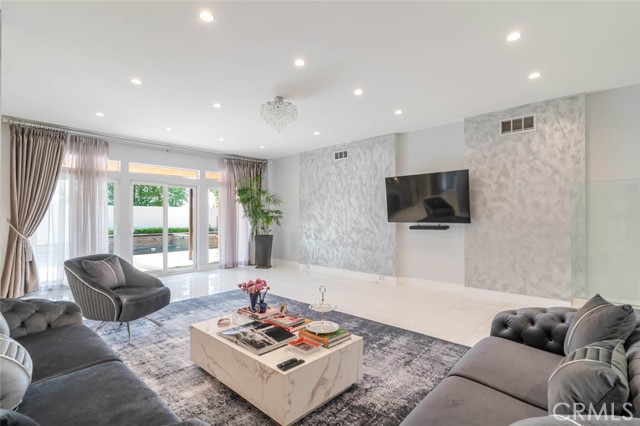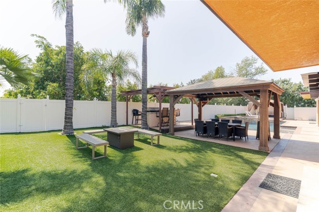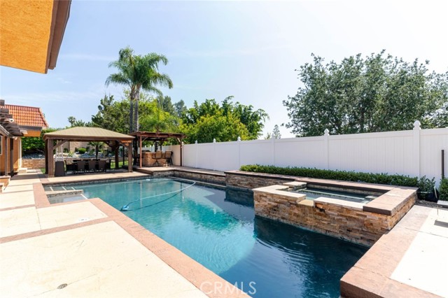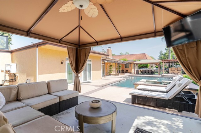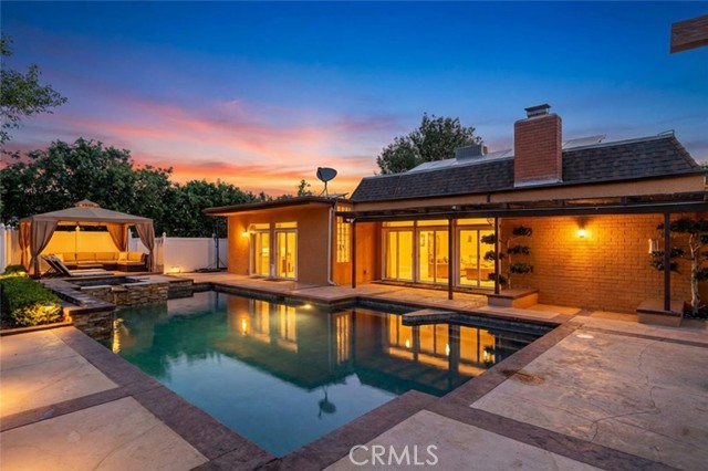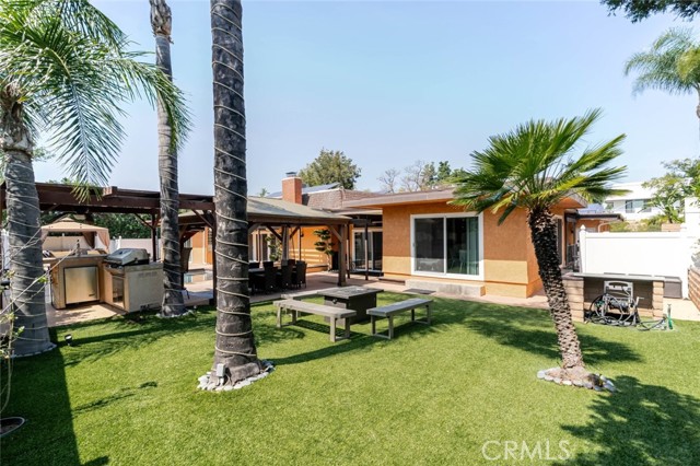 Experience resort-style living in this stunning single-story residence offering 3,953 sq ft of beautifully upgraded space with 4 bedrooms and 3 bathrooms. Designed for both comfort and entertaining, this home features an open layout with tile flooring throughout, recessed lighting, ceiling fans, and a cozy fireplace that anchors the spacious living room. The chef's kitchen is equipped with modern appliances, ample cabinetry, and a convenient wet bar, perfect for hosting gatherings with ease. Retreat to the luxurious primary suite, complete with a spa-inspired bathroom featuring a soaking tub, separate shower, walk-in closet, and even a private sauna for ultimate relaxation. Once outside to your own backyard oasis showcasing a sparkling pool and spa, surrounded by lush landscaping and palm trees. The covered patio with built-in BBQ area creates the perfect setting for outdoor dining and year-round entertaining. Additional highlights include a 3-car attached garage and thoughtfully designed indoor-outdoor flow that enhances the home's inviting atmosphere. A true entertainer's dream combining comfort, style, and resort-like amenities.