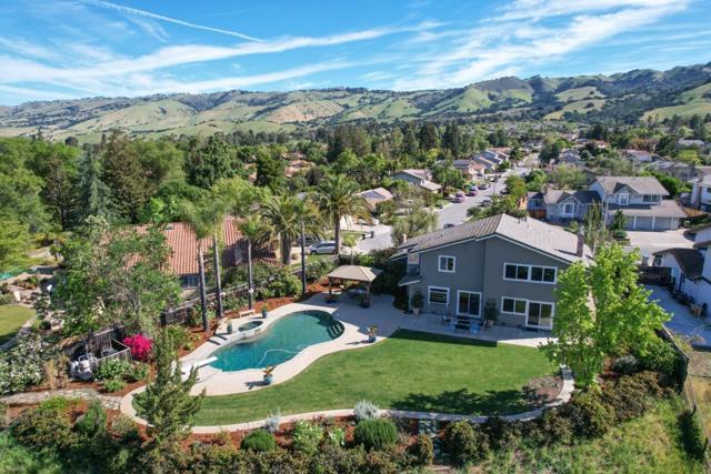 Best VIEWS in the Evergreen Valley from this meticulously maintained home in The Meadowlands. Located on a 25,000+ sf lot and landscaped to perfection to offer both privacy and breathtaking views. The large backyard is equipped with a built-in pool, spa, pergola, lawn play area & planter boxes in the rear yard for the gardening enthusiast. The interior of the home has 2768 sf of gorgeous living space with 4 bedrooms & 3 full bathrooms. Oak hardwood flooring flows throughout. The main floor bedroom was remodeled to include cherry cabinets, built-in desk, Murphy Bed plus a walk-in closet. Across the hall is a full bathroom with a walk-in shower. The Chef's kitchen is equipped with granite counter tops, cherry cabinets, stainless steel appliances, six burner stove, double ovens, pantry with pull out shelves and recessed lighting. The adjacent family room has cherry cabinetry, bar area with beverage fridge & a gas fireplace. Upstairs is the primary suite with gorgeous views, ensuite bathroom & walk-in closet. Completing the upstairs are two additional generously sized bedrooms and a beautifully remodeled hallway bath. Additional upgrades include Milgard double- paned windows throughout, NEST thermostats, and dual air & heat. Move-in ready! A spectacular must see home!
