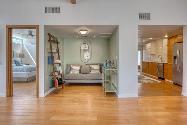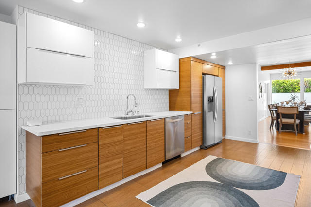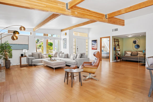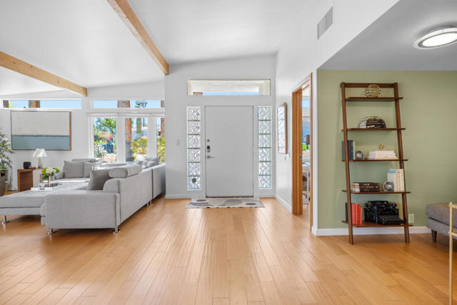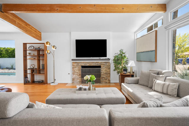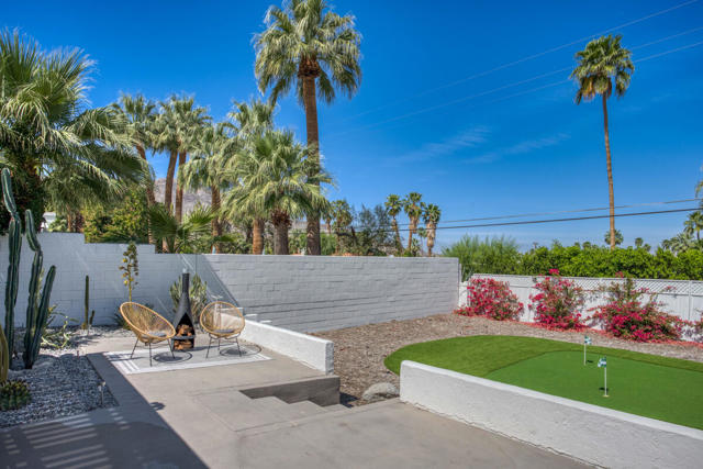 This thoughtfully updated 3-bedroom, 3-bathroom South Palm Desert mid-century home, built in 1961 with no HOA fees, perfectly blends classic mid-century character with meaningful modern upgrades. Designed by noted mid-century architect John Moyer, known for the Spider House in Pinyon Crest and his collaborations with builder Jack Meiselman in Palm Springs and Palm Desert, the home carries a piece of the region's architectural history. Recent improvements provide peace of mind, including a new roof installed in December 2023, a new HVAC system installed in February 2024, and a water heater replaced around early 2022. The backyard was enhanced in 2025 with a new putting green, while the saltwater pool was retiled and resurfaced with PebbleTec, creating a refreshed outdoor space ideal for relaxing or entertaining. Additional features include a Culligan water filtration and softening system, induction oven and cooktop, and a primary bathroom with a whirlpool soaking tub and jets. A full cabana bathroom with direct pool access adds convenience for outdoor living, and French drains installed in the front yard provide optimal drainage. An added opportunity for qualified buyers: the existing VA loan may be assumable at approximately 2.5% interest.