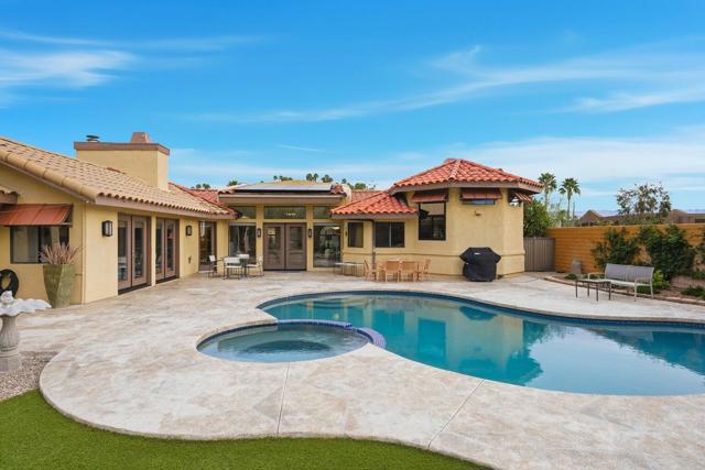 Available for Long-Term Lease - Unfurnished, Move-In ReadyExperience the ultimate desert retreat in this stunning 4-bedroom, 4 bath home, complete with a spacious attached casita featuring its own bath--ideal for guests, extended stays, or a private office. Situated on a remarkably oversized lot, this property offers panoramic, unobstructed mountain views and a sense of privacy that is truly rare in Rancho Mirage.The home's dramatic great room and kitchen, accented with warm wood ceilings, flow effortlessly to a resort-style backyard featuring a large pool and spa, perfect for relaxing, entertaining, and taking in the surrounding natural beauty. An owned solar system provides energy efficiency and cost savings, adding a modern advantage to this serene setting.Located just minutes from premier shopping, dining, golf, and the airport, this residence blends space, style, and convenience, offering a one-of-a-kind desert living experience.