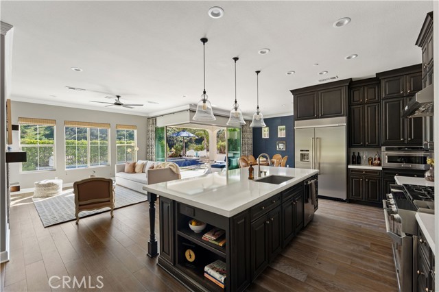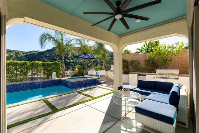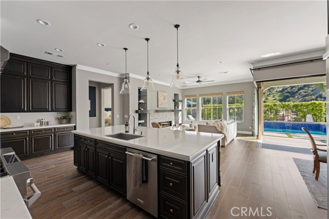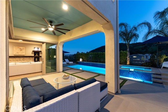 Located in the desirable Sterling at West Hills community by Pulte Homes, this newer construction Venice model residence offers approximately 4,015 square feet with 5 bedrooms and 6 bathrooms, combining modern design with quality craftsmanship.Featuring an open concept floor plan with abundant natural light, upgraded finishes, and seamless flow between the kitchen, dining, and living areas. The chef’s kitchen is anchored by a large center island, sleek countertops, custom cabinetry, and stainless steel appliances, ideal for both everyday living and entertaining. A dedicated formal dining room provides an elegant setting for gatherings, while a versatile bonus room offers flexibility as a media room, theater, playroom, or additional lounge space. Expansive sliding doors create effortless indoor outdoor connectivity, opening to a private backyard retreat complete with a pool, spa, and multiple lounging areas set against scenic hillside views.Bedrooms are generously sized, including a spacious primary suite designed for comfort and privacy. Residents enjoy access to a beautifully maintained community with its own park, offering a true neighborhood feel. Located within the boundaries of award winning El Camino Real Charter High School, the home is also conveniently close to shopping, dining, and freeway access. A rare opportunity to own a newer, resort style home in one of West Hills’ most sought after communities.