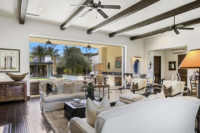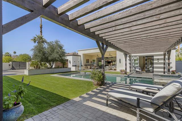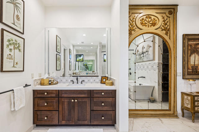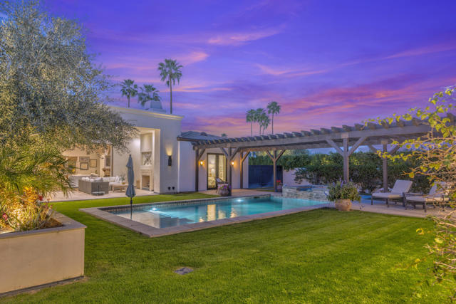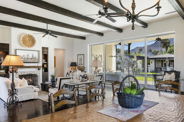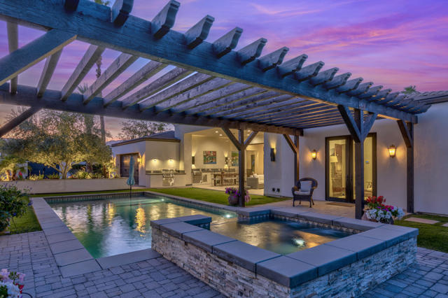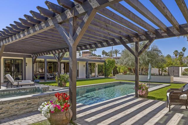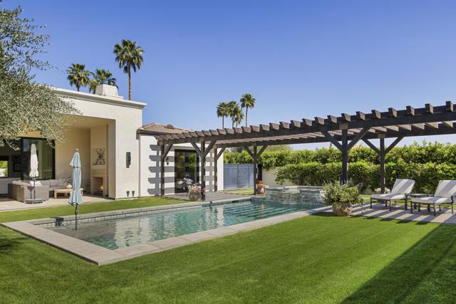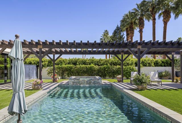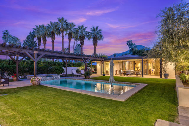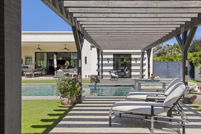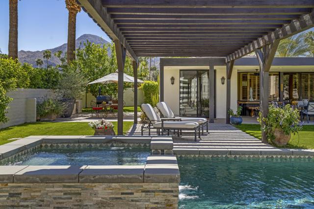 Offered for the first time, this exceptional custom estate in Indian Wells captures stunning south-facing views of Eisenhower Mountain from a premium cul-de-sac location in one of the city's most desirable pockets. Thoughtfully designed around the property's original casita, the sellers positioned the main residence to maximize views & create a seamless indoor-outdoor lifestyle centered around a private pool courtyard. Custom-built in 2020, the main residence features engineered hardwood flooring, double kitchen island in a Chef's kitchen, expansive pocket sliders opening to the pool & beautiful Spanish tile details throughout. The main home offers 2 bedrooms & 2 baths with light-filled living spaces oriented to the dramatic mountain backdrop. Across the pool, the detached casita lives as its own residence with 2 bedrooms, 2 bathrooms and living space, with the second bedroom added in 2012. Multiple outdoor seating areas connect the two homes while maintaining privacy & flexibility for guests. Offered furnished per inventory. Enjoy the benefits of Indian Wells residency including golf & dining privileges, BNP Paribas Open tennis access & use of the Grand Hyatt Indian Wells spa & fitness center.