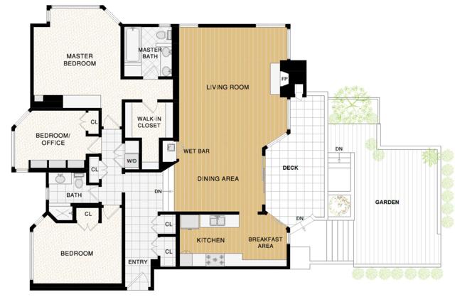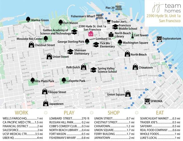 2390 Hyde, Unit 1A combines the functionality of modern living with the iconic presence of being perched atop Russian Hill. The centerpiece of this 3 bedroom, 2 bath condominium is the grand living / dining room with a fireplace, soaring ceilings and opening to a walkout deck and delightful garden. The updated eat-in kitchen combines charm with convenience. The spacious master has an ensuite bath and generous walk-in closet. Additionally, the home has an elevator to the unit, and 2 car side by side DEEDED garage parking. Flooded with light, this amazing condominium offers an oasis in the center of the city, but at the same time a location close to all that one would want. This perfect balance is highly sought after, yet rarely achieved.