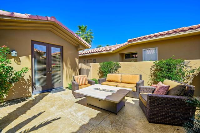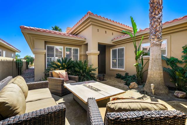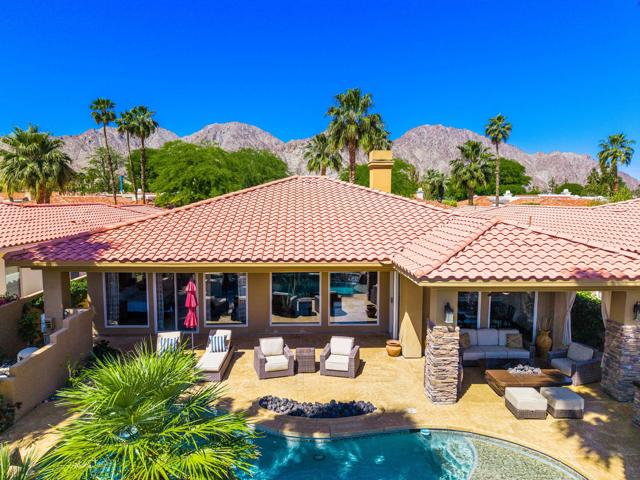 PGA WEST lifestyle living at its finest. Popular Augusta 2 floor plan this 4 bed/4.5 Bath home has been updated and is turnkey furnished and move in ready. Ideally situated just off the 10th hole tee box of the Nicklaus Private Course. Offering an east-facing orientation that captures stunning morning sunrises and soft afternoon light. Designed for desert outdoor living with a tropical backyard showcasing a sparkling pool and spa, built in bbq island, 3 backyard firepit areas and a covered patio--perfect for year-round enjoyment and entertaining.Inside the home has been thoughtfully updated for modern desert living. The upgraded kitchen features quartz countertops, stainless steel appliances and wine fridge. Kitchen opens seamlessly to the dining area and a versatile bonus family room or den. The bar is conveniently located off the dining area and leads into the spacious and inviting family room, complete with a cozy fireplace and expansive windows that fill the space with natural light and capture desert views.The primary suite serves as a private retreat, offering a full bathroom with shower, soaking tub, dual vanities, and a built in closet. Two additional bedroom suites are well-positioned within the home, providing comfort and privacy for family or guests. Casita is detached and offers privacy for guests bedroom or office space. Casita opens to the courtyard designed for relaxation and enjoyment. Completing the property is an interior laundry room including sink area and spacious 3-car garage with cabinets, extra fridge, epoxy floor and wall a/c split. Turnkey Furnished and ready for you to move in and enjoy. PGA WEST is a premier lifestyle community offering a variety of membership options and amenities, making it one of the most desirable destinations for luxury desert living. Come make this your desert home!