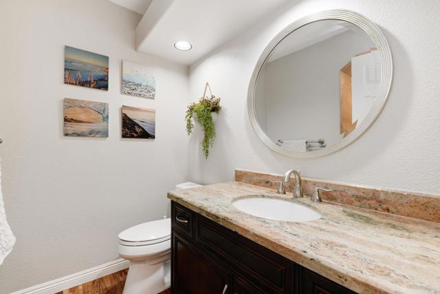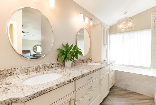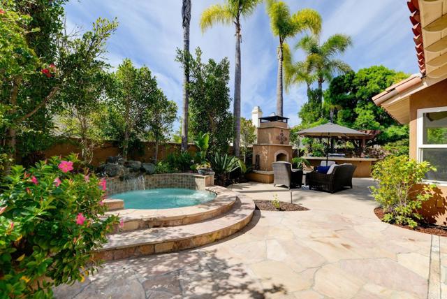 Beautifully updated Carmel Valley home situated on a quiet cul-de-sac where traffic is limited primarily to residents, just two blocks from the Bay Club and zoned for Carmel Del Mar Elementary School within both the highly sought-after Del Mar Union School District and San Dieguito middle and high school districts. Impeccably maintained by its long-term owner, this 4-bedroom, 3 full bathroom home offers a flexible and functional layout designed for everyday living and entertaining. The downstairs features a formal living room, dining room, family room, and an updated kitchen—all with views of the serene backyard. The kitchen connects seamlessly to both the dining room and family room and includes a casual eat-in area and bar seating for multiple dining options. The kitchen was renovated with custom cabinetry with soft-close doors and drawers, pull-outs, built-in organizers, granite countertops, a large picture window, and stainless steel appliances including KitchenAid gas cooktop, refrigerator, oven, and convection microwave, and a Bosch dishwasher. The downstairs also features a fourth bedroom, offering a flexible space for a bedroom, media room, or playroom. The nearby bathroom includes a shower to comfortably serve the downstairs bedroom if desired. Upstairs, the primary suite is privately situated and features a fireplace, a spacious sleeping and sitting area, and windows overlooking the backyard. The en suite bathroom includes dual sinks, granite countertops, custom cabinetry, a Kohler soaking tub, and a dual-head shower with rain feature, while a walk-in closet with custom built-ins completes the space. Two additional bedrooms and a remodeled bathroom with dual sinks, custom cabinetry and quartz countertops are located on the opposite side of the second level, offering both privacy and functionality. Interior upgrades include wood flooring throughout the downstairs living areas, ample recessed lighting, ceiling fans in all bedrooms, and built-in surround sound in the family room. Outdoor living is equally well-appointed, with a beautifully landscaped backyard featuring an in-ground spa, built-in BBQ with refrigerator, and a wood-burning fireplace with gas starter—designed for both relaxation and entertaining. Additional highlights include air conditioning, a whole house fan, upgraded closets throughout, a finished garage with an EV charger, built-in cabinetry, overhead storage, pegboard organization, and the rare benefit of no HOA.