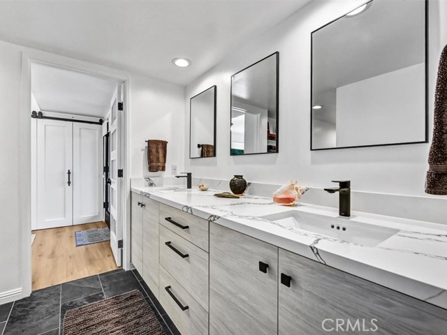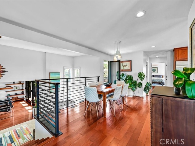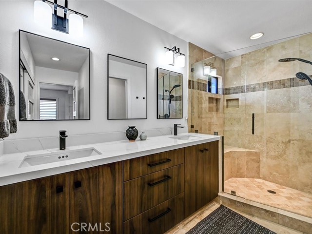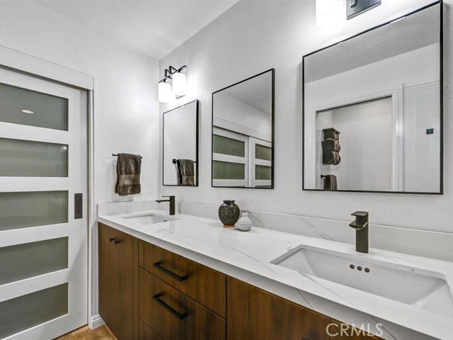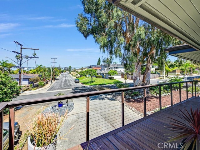 Ocean views and contemporary coastal elegance define this exceptional Olde Carlsbad home. Filled with natural light and showcasing quality craftsmanship throughout, the residence offers a modern open floor plan that captures ocean views from multiple vantage points, including the expansive wraparound deck—an ideal setting for relaxing or enjoying breathtaking sunsets over the Pacific. The freshly painted exterior enhances the home’s crisp coastal presentation, while beautifully upgraded bathrooms feature stylish finishes and thoughtful design, elevating both comfort and appeal. The spacious chef’s kitchen offers generous counter space, abundant cabinetry, built-in stainless steel appliances, and a Dacor professional-grade gas five-burner cooktop with a contemporary range hood—perfectly suited for everyday living and entertaining. The adjacent family room and dining area flow seamlessly to the ocean-view deck, creating effortless indoor-outdoor living. The formal living room exudes a distinctive mid-century feel, highlighted by beautiful hardwood floating shelves and double French doors that open onto a private patio—an inviting space for gatherings or quiet retreat. Upstairs, the light-filled primary suite enjoys coastal views and features French doors that open directly to the wraparound deck, along with ample closet space and a newly upgraded Master Suite bathroom with dual sinks, custom cabinetry, and a walk-in glass shower. On the lower level, two additional bedrooms share a beautifully upgraded, spa-inspired Jack-and-Jill bathroom with dual sinks, and a spacious walk-in glass shower with modern, elegant finishes. One bedroom opens out to the backyard via both French doors, and a sliding glass patio door. Additional highlights include Santos mahogany and travertine flooring, plantation shutters, a dedicated upstairs laundry room, generous storage throughout, a two-car garage, and ample parking for additional cars in the driveway. Situated on a quiet street on a 7,707-square-foot lot, the grassy backyard wraps around the home and provides multiple areas for outdoor enjoyment. Located within walking distance to Carlsbad Village, beaches, shops, dining, and local schools, this property offers the quintessential coastal lifestyle with no HOA or Mello-Roos.