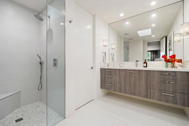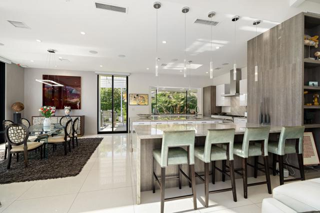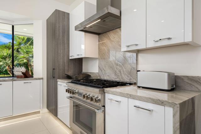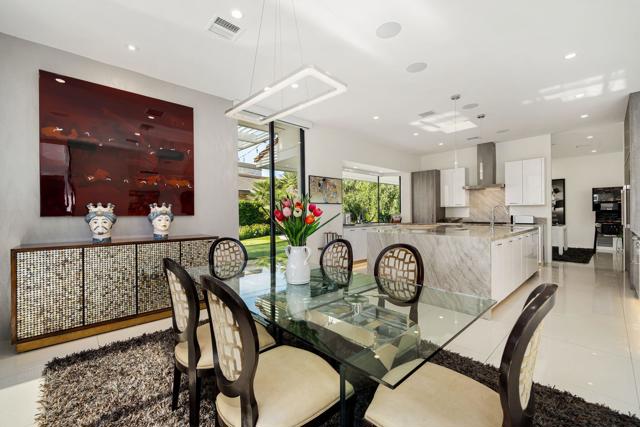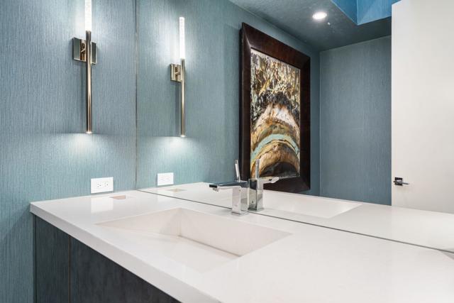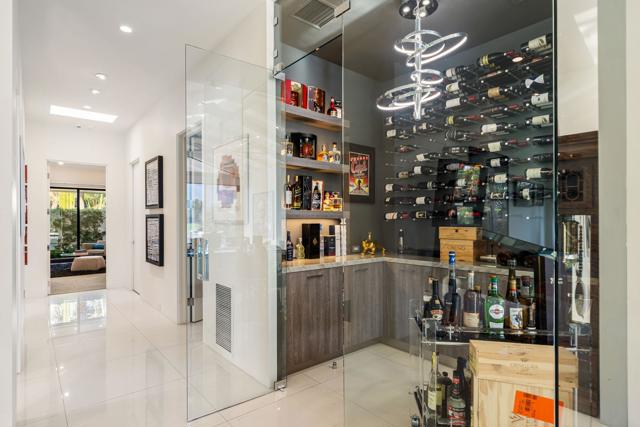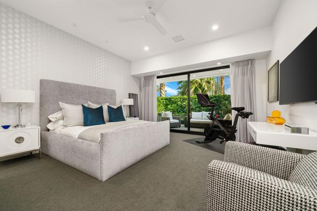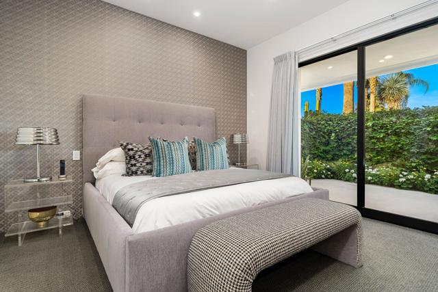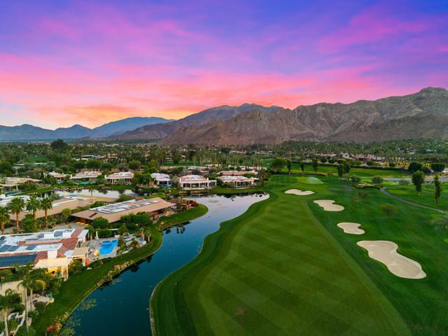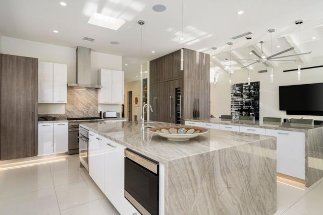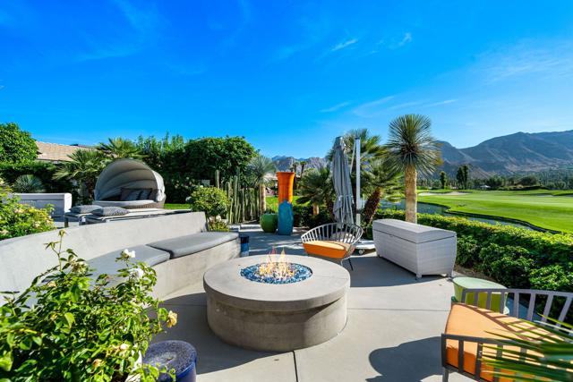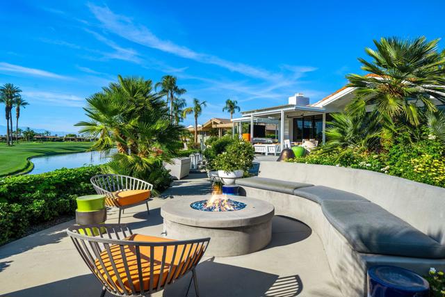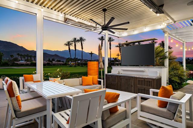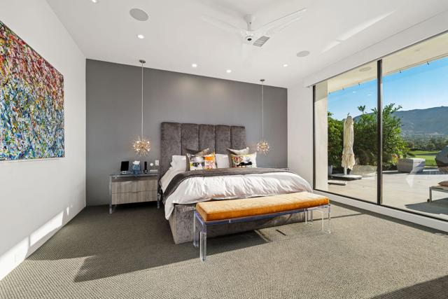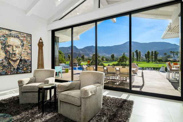 Commanding double fairway and Southwest mountain views, this fully reimagined modern estate in the prestigious Club at Morningside is set on one of Rancho Mirage's most coveted lots. This 4BD/5BA residence offers seamless indoor-outdoor living with soaring ceilings, smooth-finish walls, and expansive glass opening to a private resort-style setting. A fully integrated Savant smart home system controls lighting, climate, and shades, complemented by a 91-panel owned solar system. The chef's kitchen features top-tier Thermador appliances, dual dishwashers, an under-counter Sub-Zero beverage refrigerator, and a striking glass wine display. Outdoor living is elevated by a custom blue glass-tile saltwater pool and spa, an expansive patio, a BBQ island, a misting system, custom lighting, and a six-hole putting green. A fully equipped cabana with pop-up TV, heaters, fans, and automated shades ensures year-round enjoyment. The primary suite captures double fairway views and offers a fireplace, sitting area, spa bath, steam room, and dual vanities, plus a separate air-conditioned bonus room. Additional highlights include a dramatic 11-foot pivot entry and a custom garage with epoxy floors, glass doors, built-ins, and golf cart space.