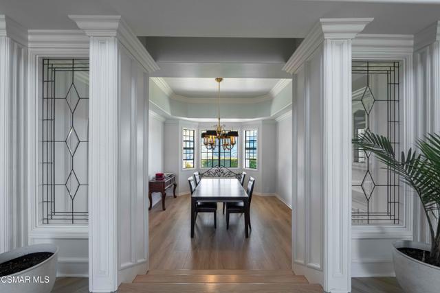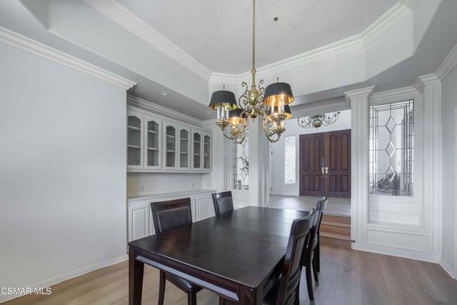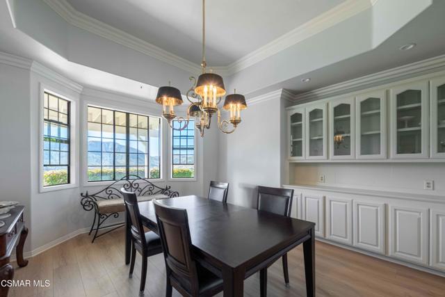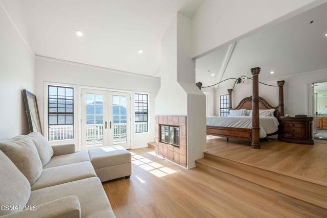 Discover panoramic hilltop living in the heart of Santa Rosa Valley's coveted equestrian community. Perched on an expansive 43,995 sq ft lot, this 3,925 sq ft residence blends timeless character with thoughtful modern updates--all surrounded by sweeping valley and mountain views.Inside, the home welcomes you with generous natural light, warm original details, and multiple spaces designed for gathering. The family room with a cozy fireplace flows into the formal dining room, creating an ideal backdrop for entertaining. The spacious kitchen features a large center island, updated appliances, and charming vintage elements that preserve the home's character. An inviting eating area just off the dining room frames picturesque views of the backyard and rolling hills.The main level includes a full laundry room and a desirable bedroom with en-suite bathroom, perfect for guests or multi-generational living.Upstairs, the primary suite is a true retreat--complete with its own seating area, a see-through walk-around fireplace, and French doors that open to an expansive upper patio deck with breathtaking views. The spa-inspired primary bath offers a sunken jetted tub, dual vanities, a stall shower, and walk-in closets for ample storage. Three additional bedrooms and two bathrooms complete the upper floor.Outside, the grounds offer endless potential for outdoor living, equestrian amenities, gardens, or future customization--all framed by the privacy and serenity that only a hilltop setting can provide.A rare opportunity to own a view property in one of Ventura County's most desirable equestrian enclaves.