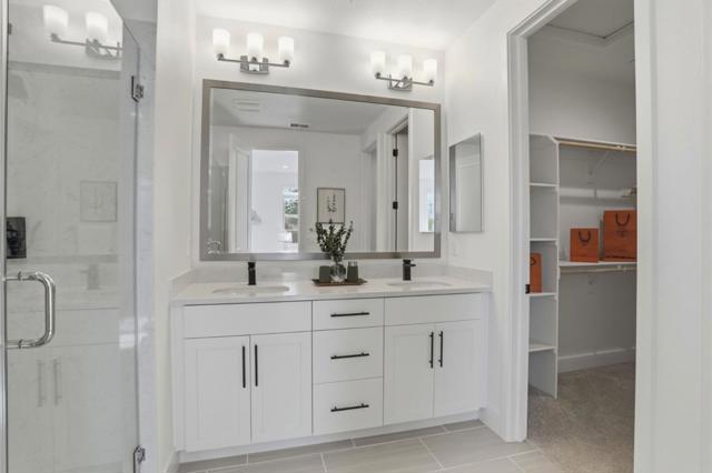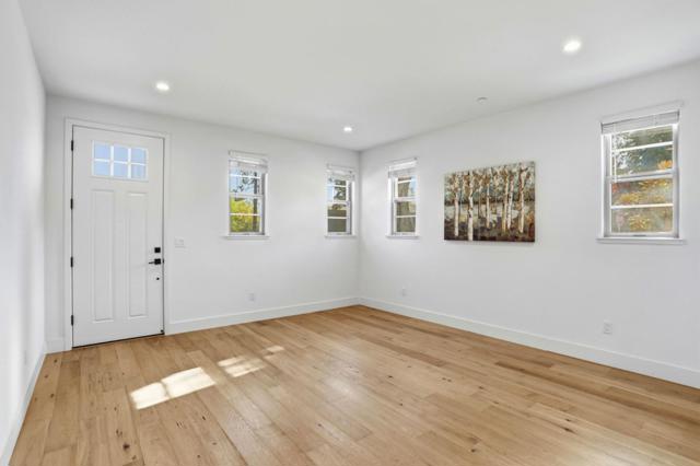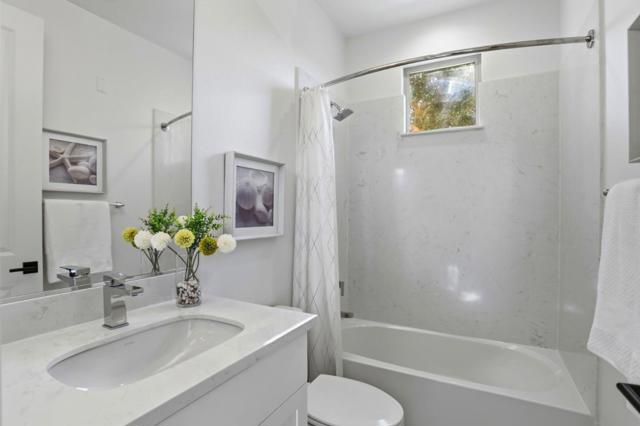 Presenting a contemporary end-unit townhouse featuring three bedrooms and three bathrooms with 1821sqft, constructed by SummerHill Homes in 2024. The entry level features a large den suitable for a gym, office, or living space. The second floor offers a spacious open-concept design that seamlessly links the living room, dining area, and kitchen, which includes a large island, ample counter space, and an upgraded backsplash. There's also a guest room with a full bathroom on this level. Upstairs, the primary suite has a walk-in closet and a bathroom with dual vanities, while a second bedroom features its own ensuite full bath. This home features fully owned solar panels and a 220V EV charging outlet in a two-car, side-by-side garage. It also comes with a washer and dryer, refrigerator, EV cable, and TV wall mountall included. Desirable Verano community featuring a central park for BBQs and gatherings. Centrally located in Mountain View near top employers like Google, LinkedIn, Microsoft, and NASA. Close to downtown restaurants, farmers market, VTA/Caltrain, and highways 101, 280, and 85. Must see!