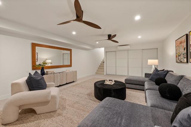 Welcome to South Palm Desert. Walking distance or a golf cart ride to the Desert's hottest entertainment/restaurant/shopping corridor -''El Paseo.'' Situated in one of the most sought-after locations (No HOA), this home seamlessly blends an exceptional setting with a thoughtfully designed estate home. The home boasts the following key features: 4,196 SF, 4 bedrooms and 4.5 bathrooms, plus an office or optional 5th bedroom, detached pool house, and a large fully finished basement game room or can be home theater. This home took hours of planning, permitting, and executing in order to achieve the perfect contemporary living experience in South Palm Desert. Upon entering the residence, you will see the open floor plan that feels airy and inviting, with tons of natural light. Next, the rear portion of the home features a custom stackable glass slider to capture the entertainer's backyard with a resort style pool, built in firepit, built in BBQ, and modern landscaping and hardscape. The kitchen features a large center island, custom cabinets, built in brand new Thermador appliances. The property also offers a 4-car garage, additional off-street parking, and Solar. Big bonus is a true detached pool house perfect for gym,office, or den. Other notable features new windows and sliders, custom front pivot door, large format tile throughout the home, smooth drywall, new concrete hardscape and landscape, smooth exterior stucco, epoxy garage floor, custom walk-in showers, custom interior doors, recessed built in LED lighting throughout entire home, custom closet build outs, and LED ceiling lights. Enjoy the professional pictures, but an in-person visit will not disappoint you.